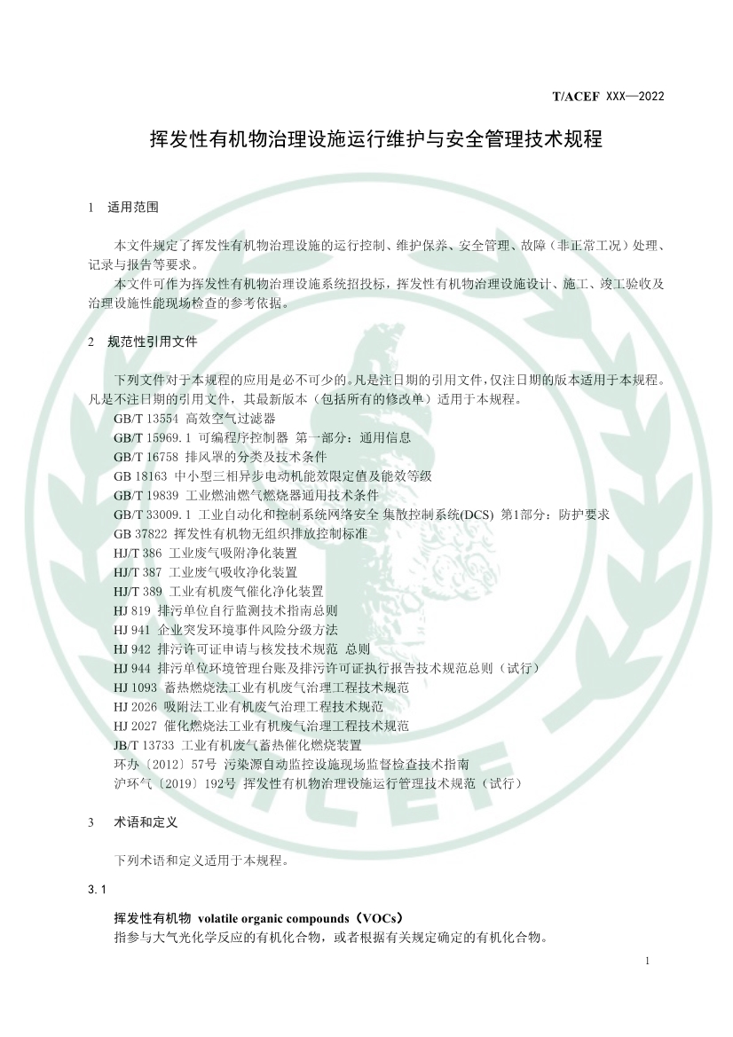 《揮發(fā)性有機物治理設(shè)施運行維護與安全管理技術(shù)規(guī)程》(征求意見稿)