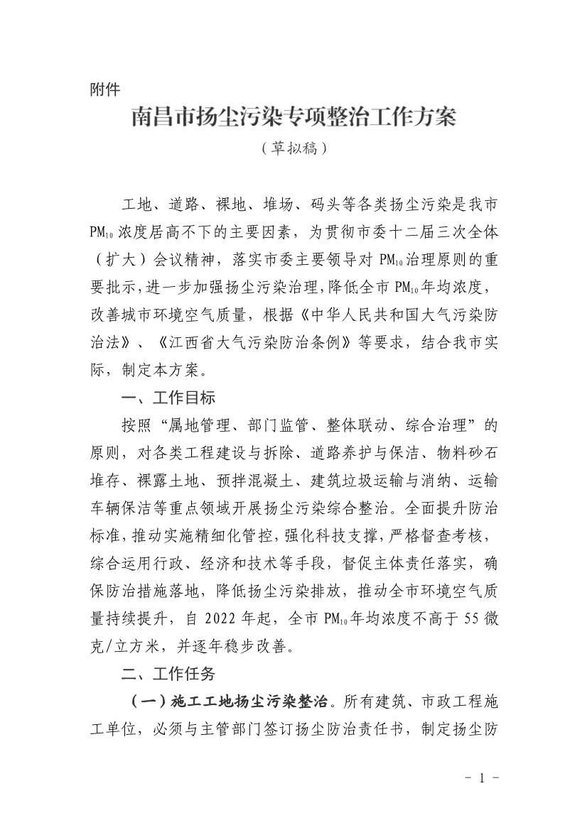 《南昌市揚(yáng)塵污染專項(xiàng)整治工作方案(草擬稿)》