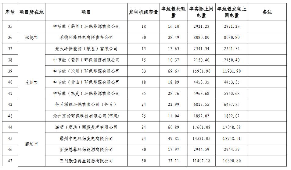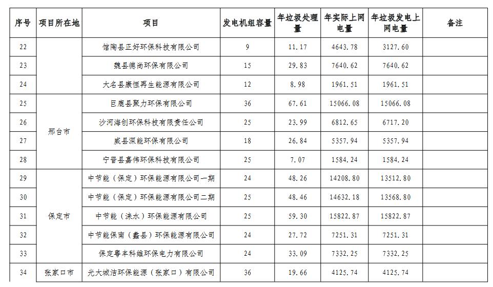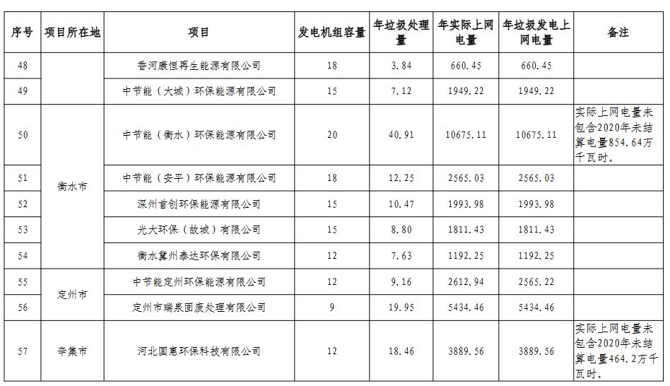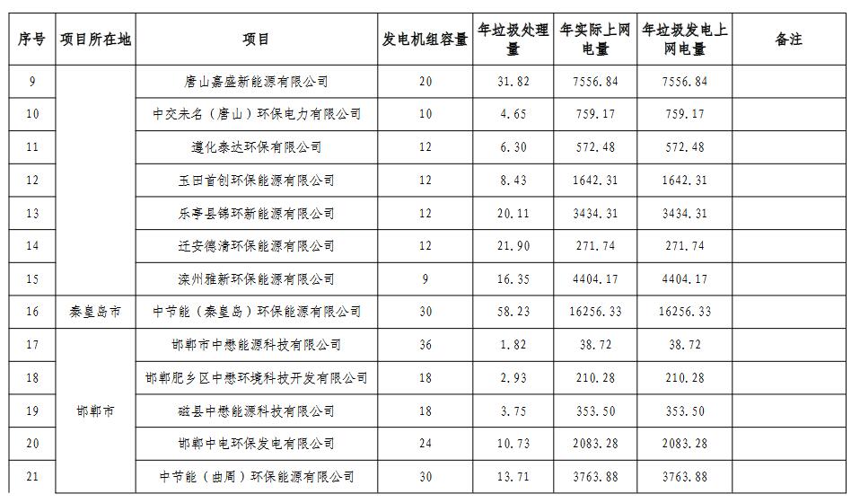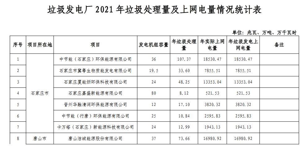 《河北省 垃圾發(fā)電廠2021年統(tǒng)計(jì)電量和2022年預(yù)計(jì)電量》