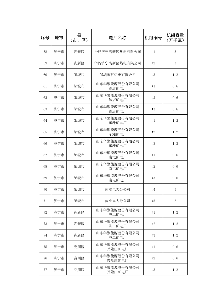 關(guān)于山東省2021年下半年淘汰關(guān)停燃煤機組的公示