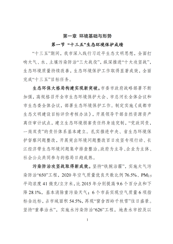 《成都市“十四五”生態(tài)環(huán)境保護(hù)規(guī)劃》