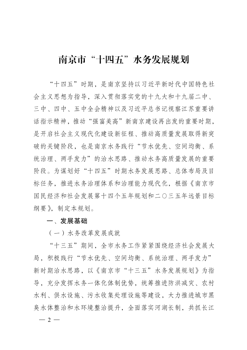 《南京市“十四五”水務(wù)發(fā)展規(guī)劃》