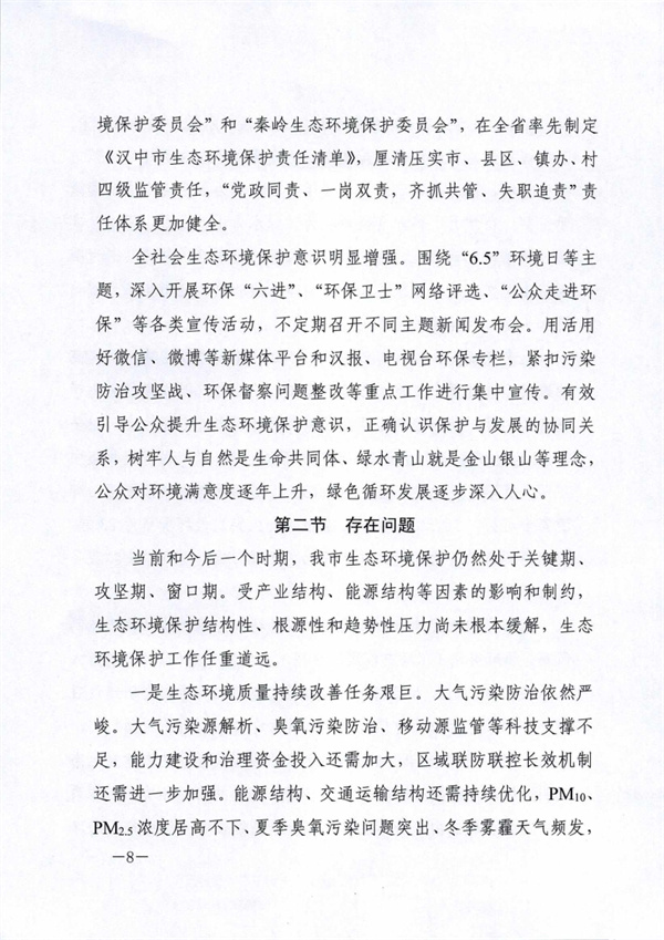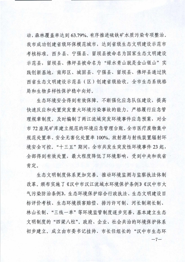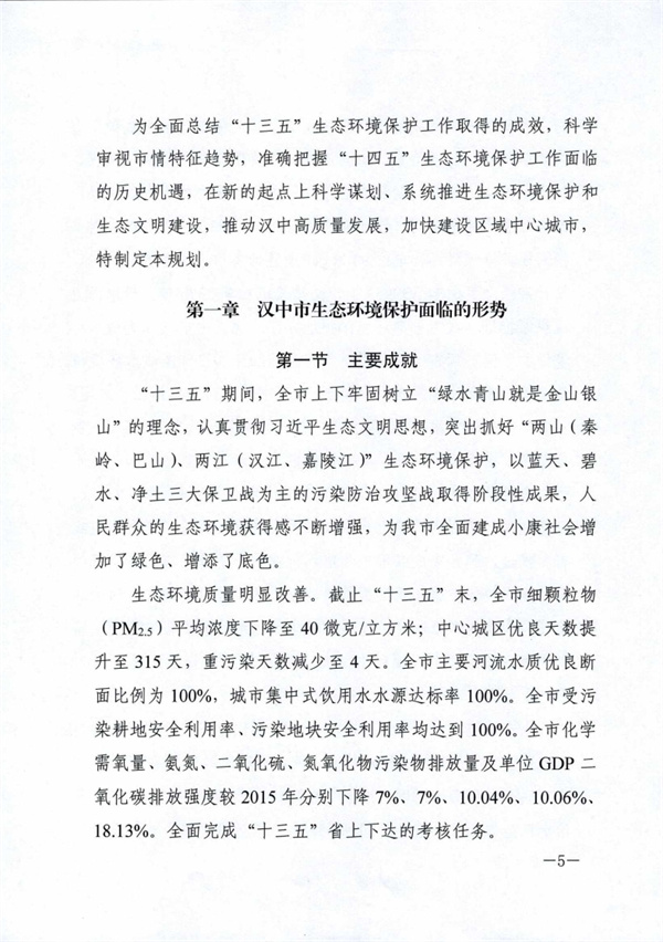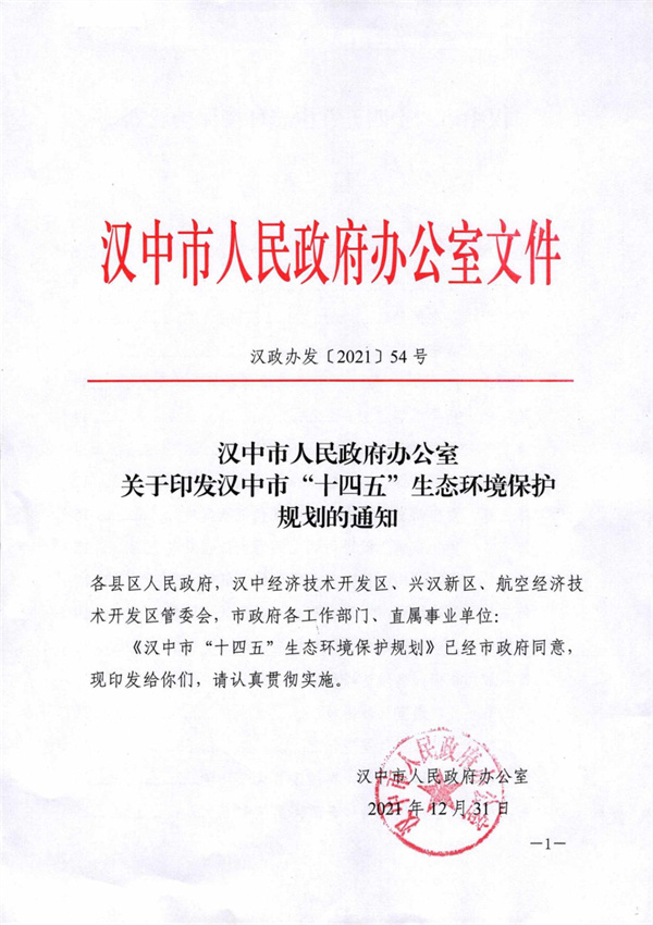 《漢中市“十四五”生態(tài)環(huán)境保護(hù)規(guī)劃》(漢政辦發(fā)【2021】54號(hào))