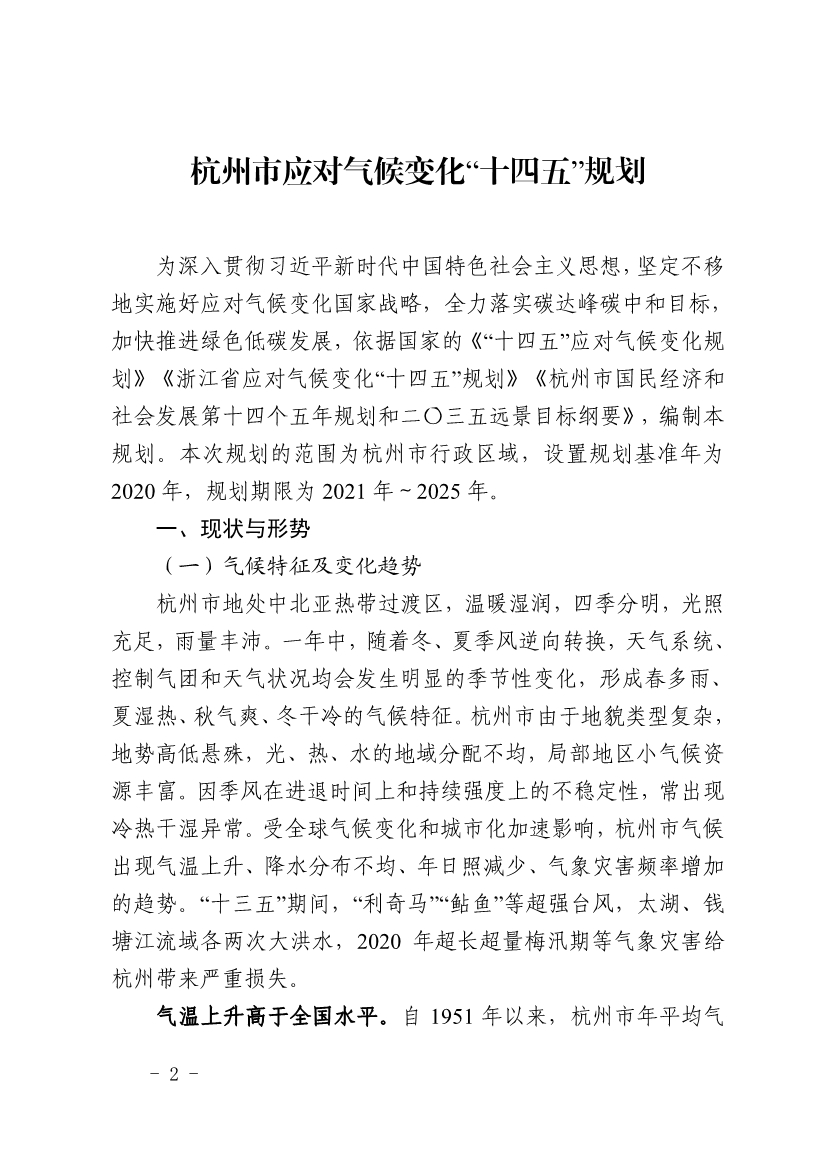 《杭州市應(yīng)對(duì)氣候變化“十四五”規(guī)劃》