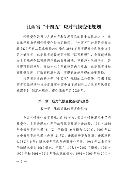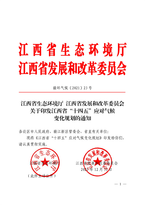 《江西省“十四五”應(yīng)對氣候變化規(guī)劃》(贛環(huán)氣候【2021】23號)