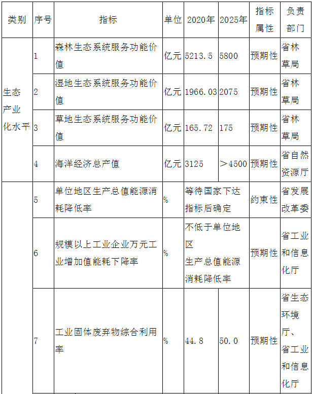 遼寧省“十四五”生態(tài)經濟發(fā)展規(guī)劃指標表