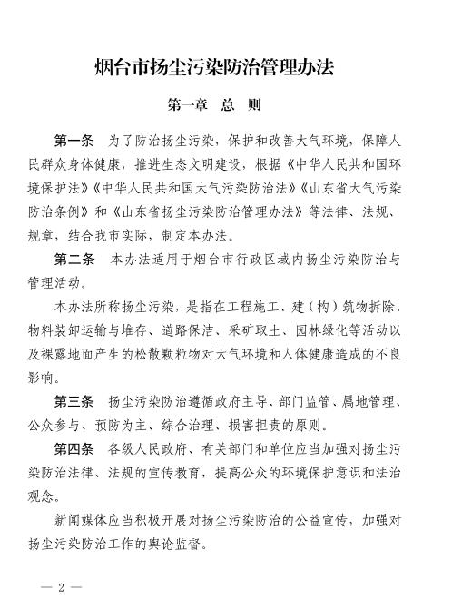 《 煙臺(tái)市揚(yáng)塵污染防治管理辦法》