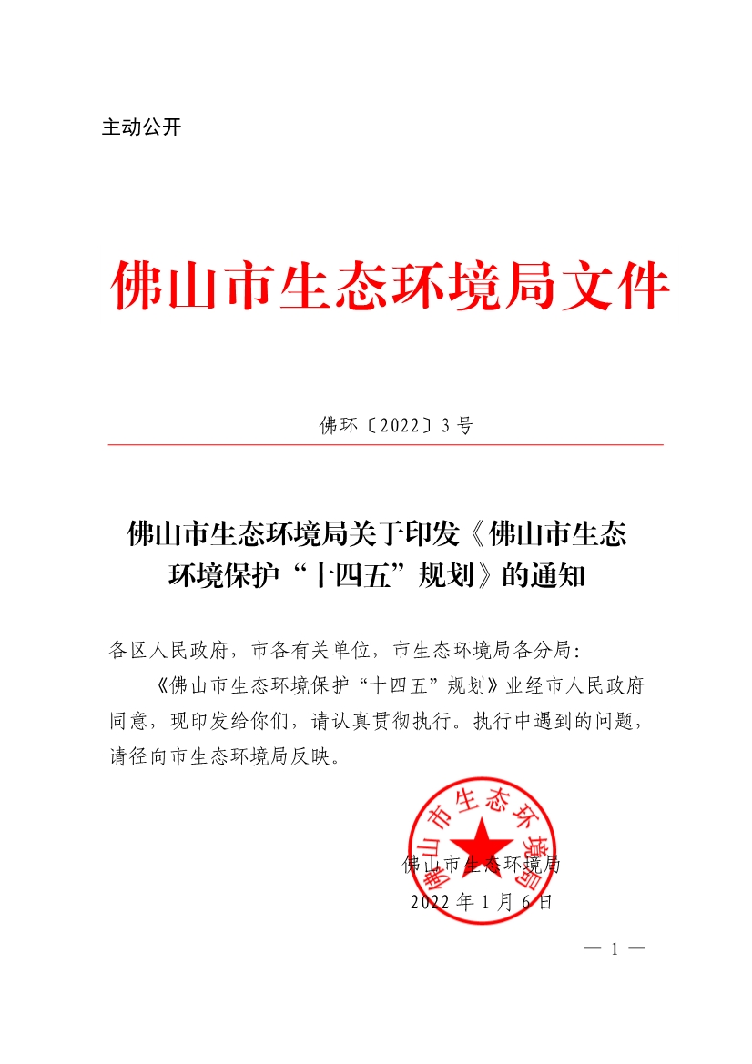 佛山市生態(tài)環(huán)境局關(guān)于印發(fā)《佛山市生態(tài)環(huán)境保護(hù)“十四五”規(guī)劃》的通知《佛山市生態(tài)環(huán)境保護(hù)“十四五”規(guī)劃》
