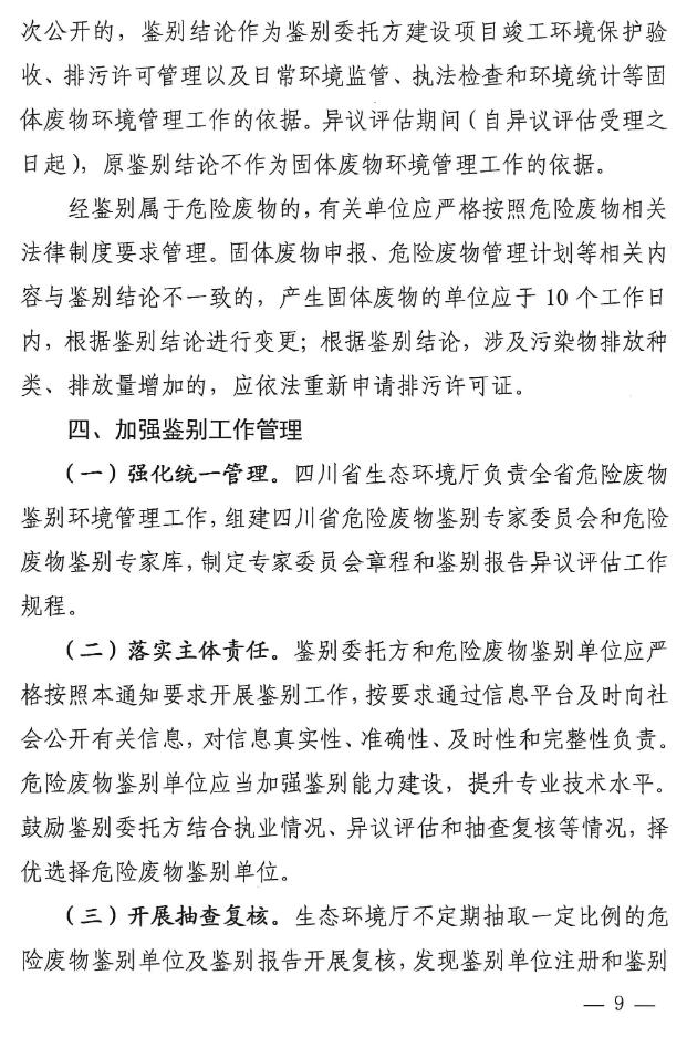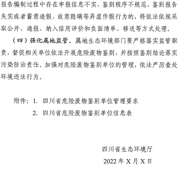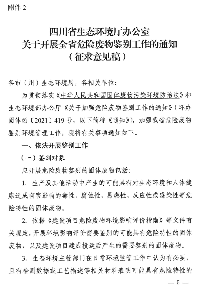 《四川省 關(guān)于開(kāi)展全省危險(xiǎn)廢物鑒別工作的通知(征求意見(jiàn)稿)》