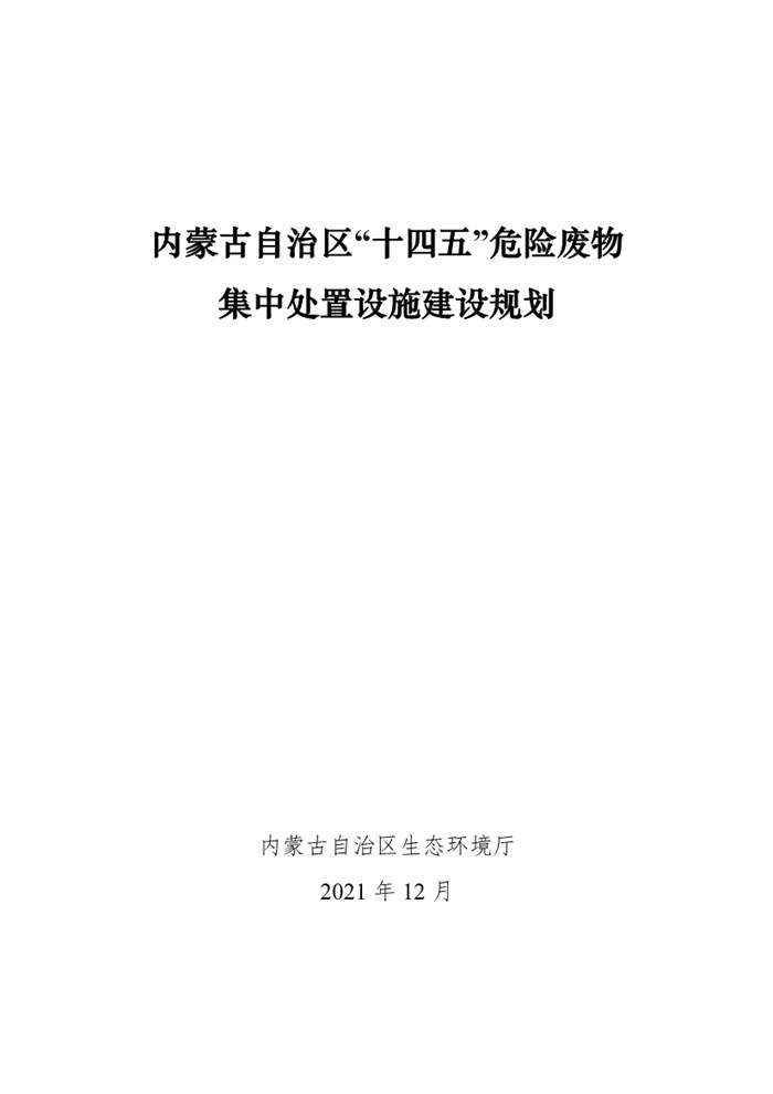 2021年12月30日《內(nèi)蒙古自治區(qū)“十四五”危險(xiǎn)廢物集中處置設(shè)施建設(shè)規(guī)劃》