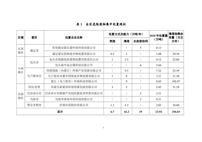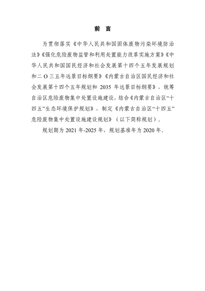 《內(nèi)蒙古自治區(qū)“十四五”危險(xiǎn)廢物集中處置設(shè)施建設(shè)規(guī)劃》
