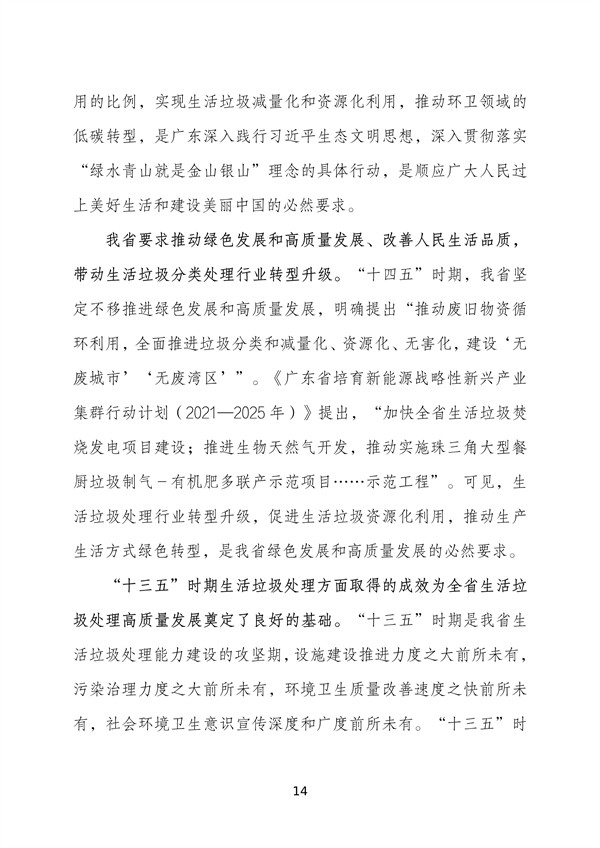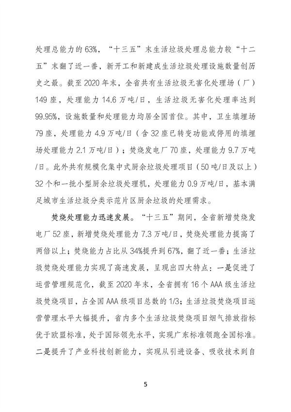 《廣東省生活垃圾處理“十四五”規(guī)劃》