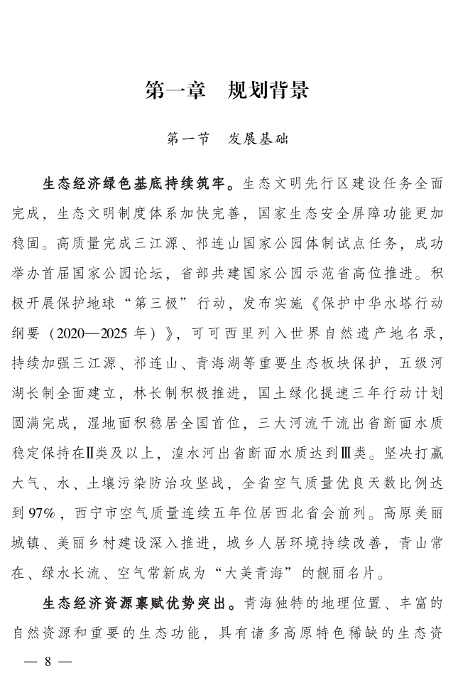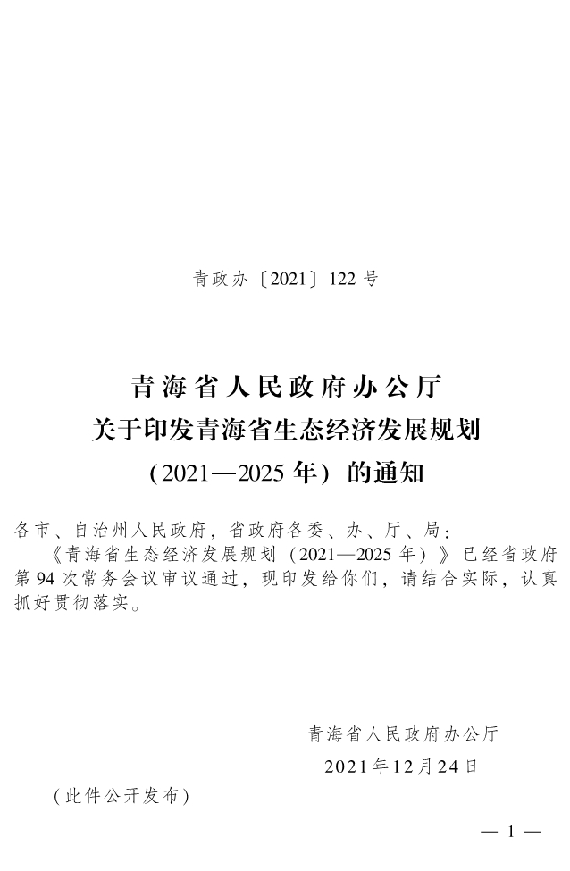 青海省生態(tài)經(jīng)濟(jì)發(fā)展規(guī)劃(2021-2025年)《青海省生態(tài)經(jīng)濟(jì)發(fā)展規(guī)劃(2021—2025年)》(青政辦 〔2021〕 122 號(hào))