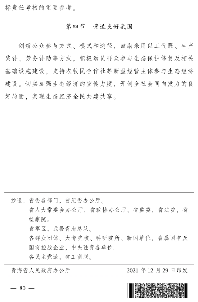 青海省人民政府辦公廳關(guān)于印發(fā)青海省生態(tài)經(jīng)濟(jì)發(fā)展規(guī)劃《青海省生態(tài)經(jīng)濟(jì)發(fā)展規(guī)劃(2021—2025年)》(青政辦 〔2021〕 122 號(hào))
