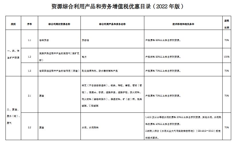 附件:資源綜合利用產(chǎn)品和勞務(wù)增值稅優(yōu)惠目錄(2022年版)