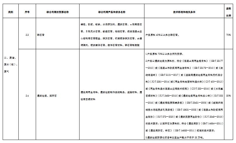 (一)綜合利用的資源名稱、綜合利用產(chǎn)品和勞務(wù)名稱、技術(shù)標(biāo)準(zhǔn)和相關(guān)條件、退稅比例等按照本公告所附《資源綜合利用產(chǎn)品和勞務(wù)增值稅優(yōu)惠目錄(2022年版)》)(以下稱《目錄》)的相關(guān)規(guī)定執(zhí)行。