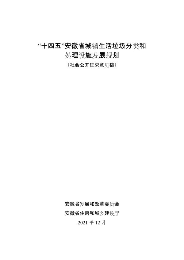 《“十四五”安徽省城鎮(zhèn)生活垃圾分類和處理設(shè)施發(fā)展規(guī)劃》(征求意見稿)