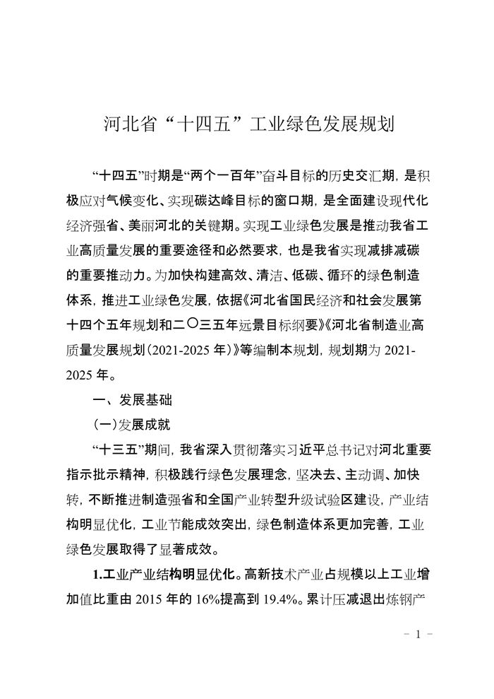 《河北省“十四五”工業(yè)綠色發(fā)展規(guī)劃》(冀工信節(jié)【2021】335號)