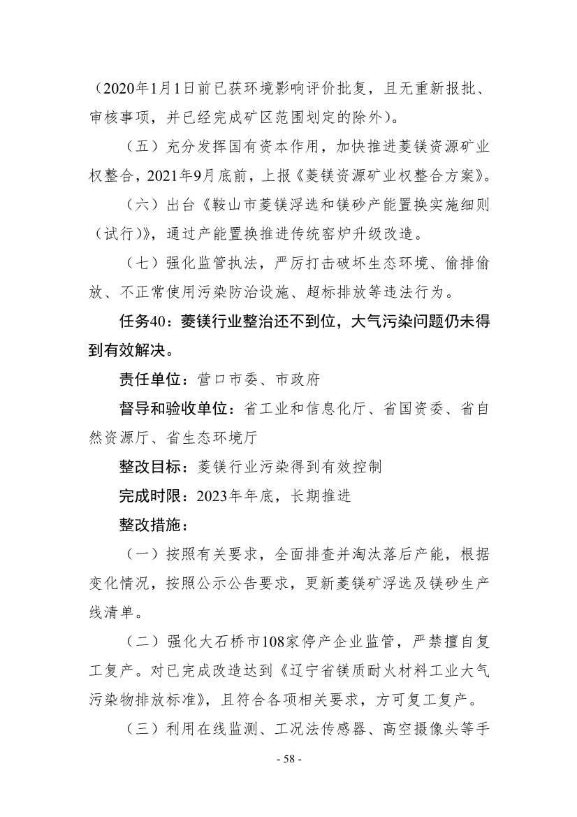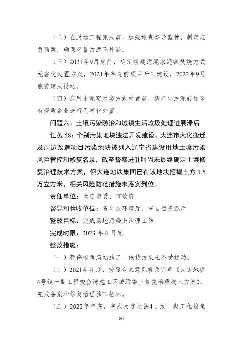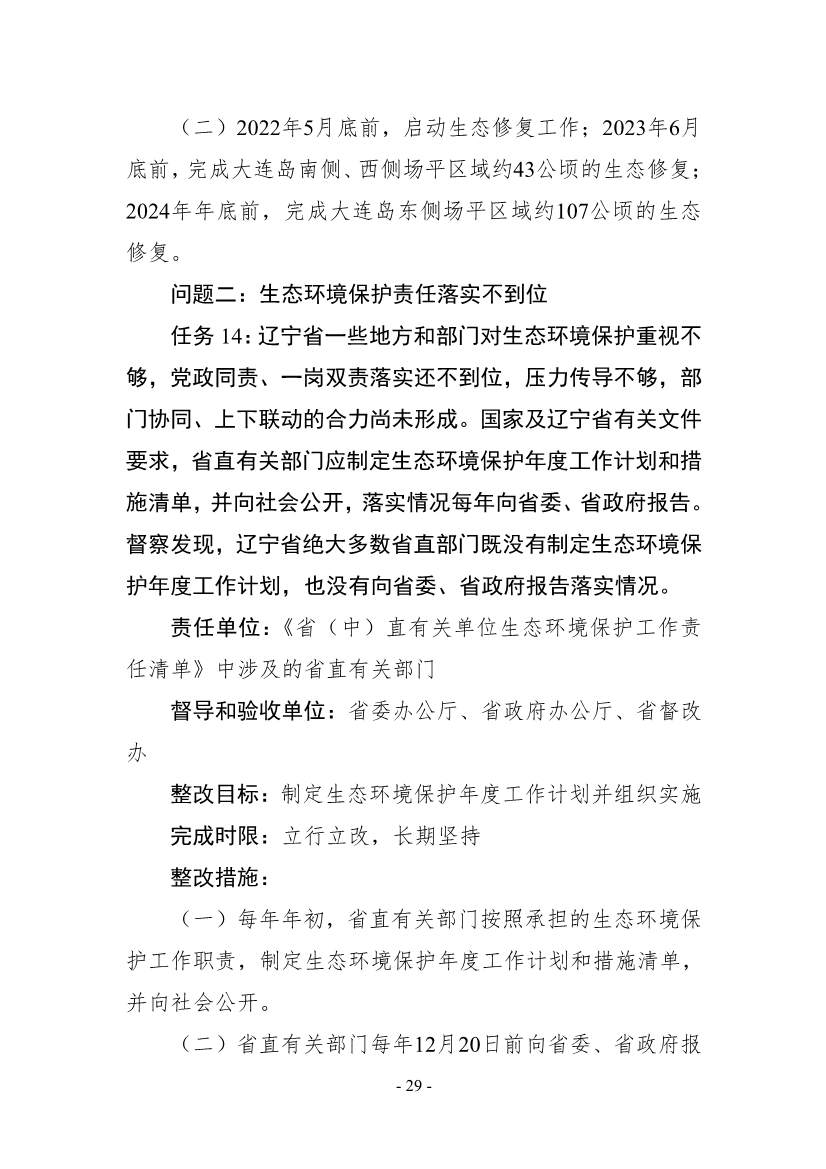 《遼寧省公開(kāi)第二輪中央生態(tài)環(huán)境保護(hù)督察整改方案》