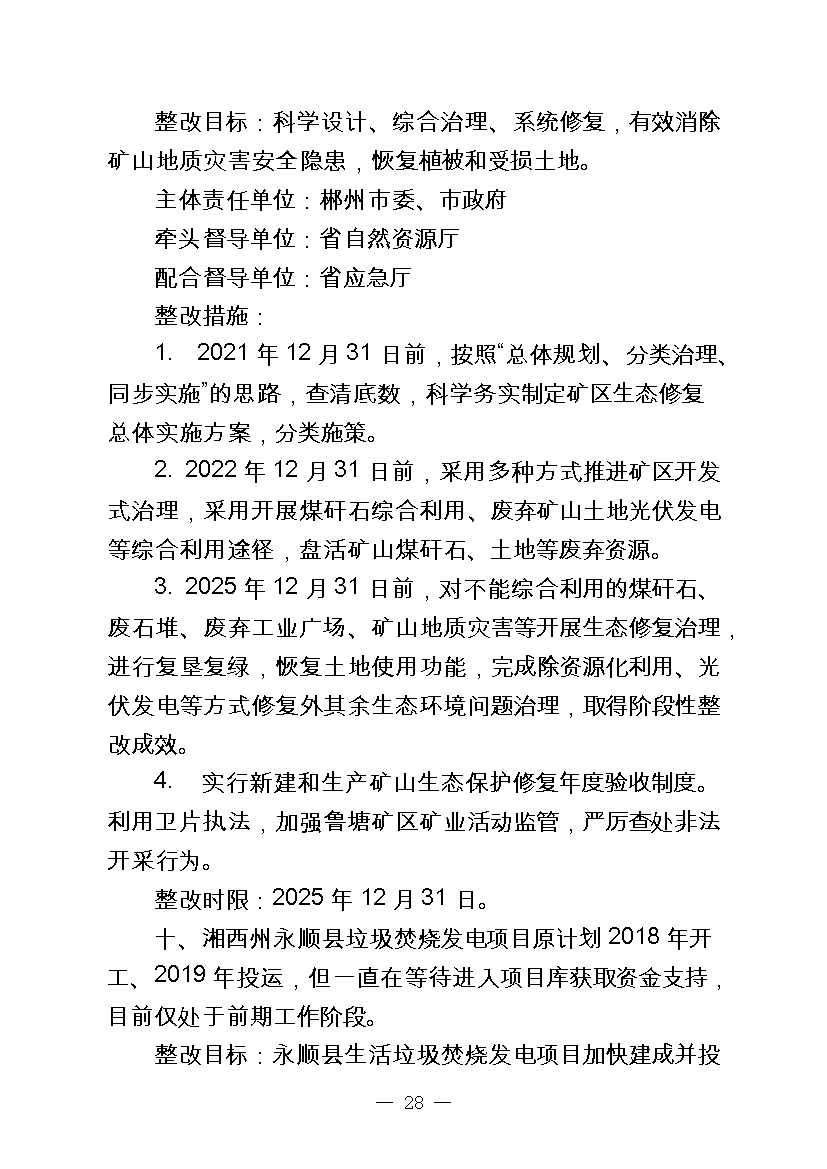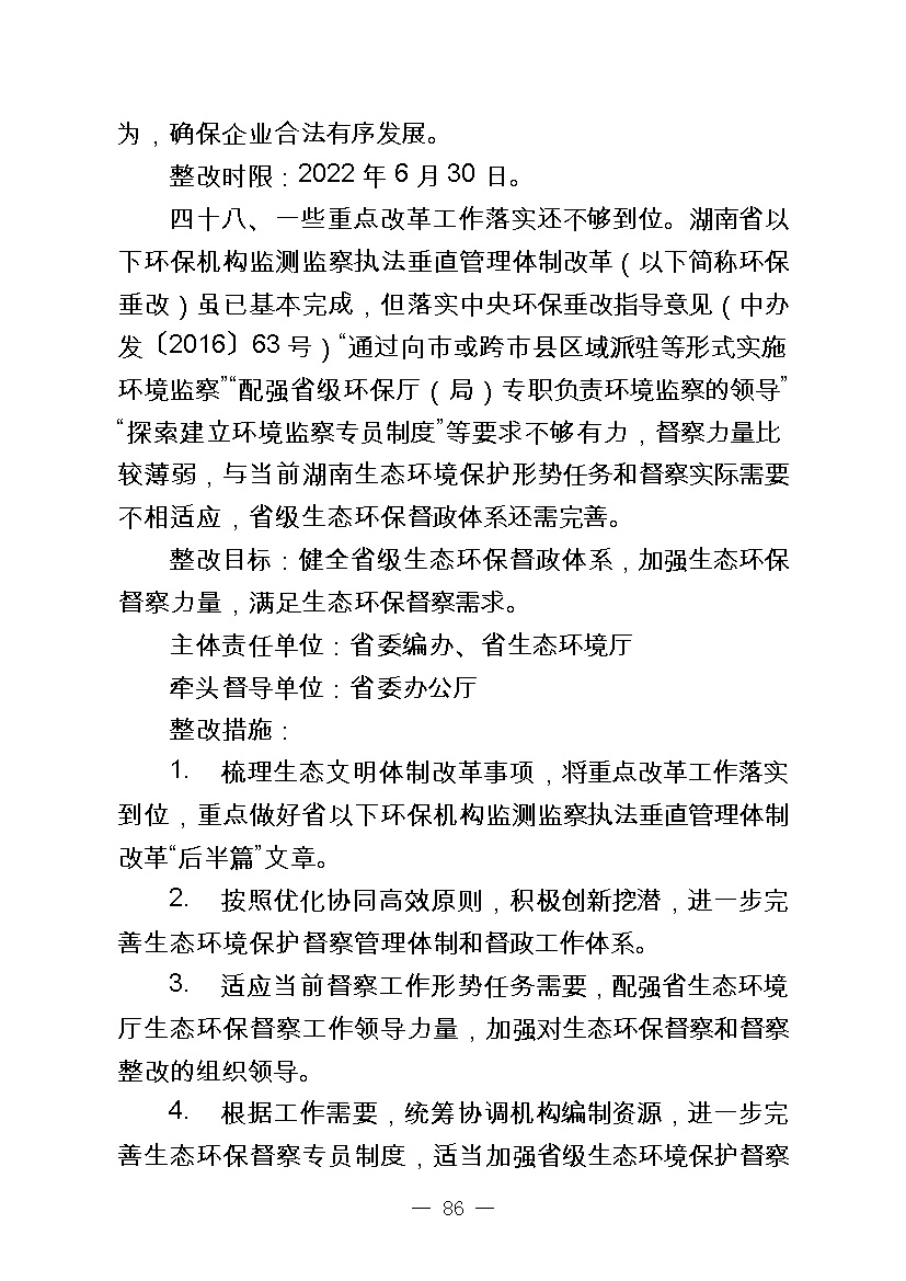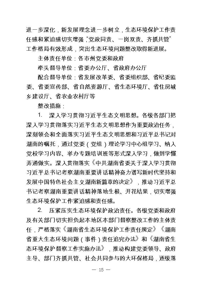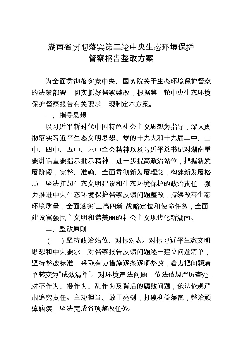《湖南省貫徹落實(shí)第二輪中央生態(tài)環(huán)境保護(hù)督察報(bào)告整改方案》