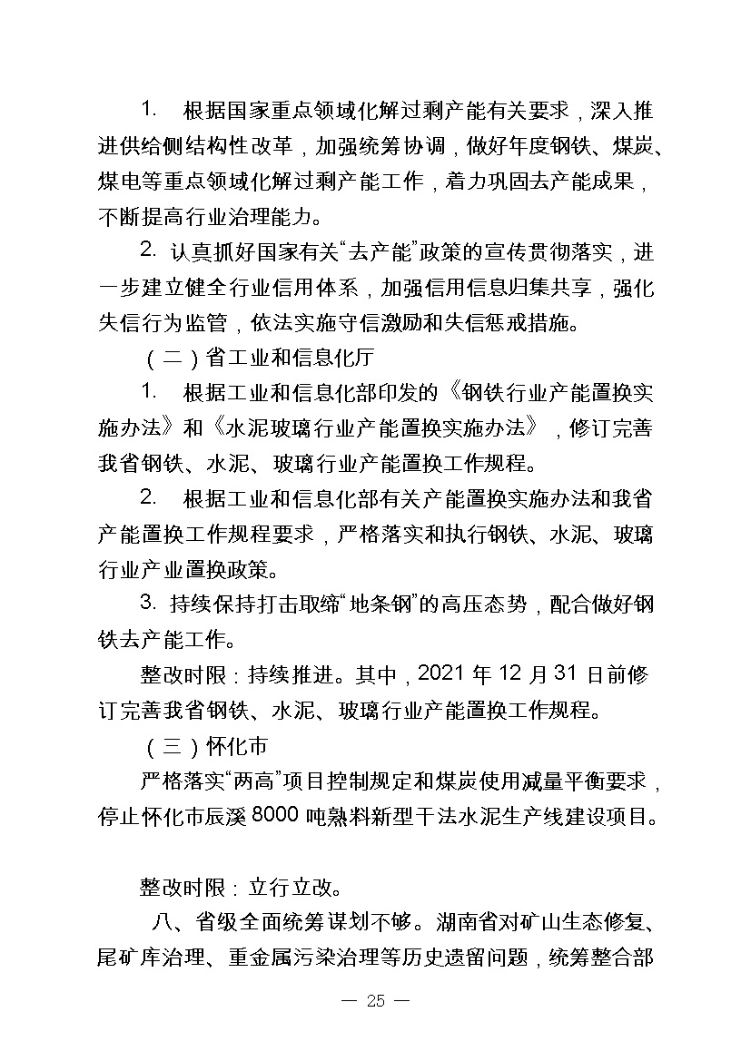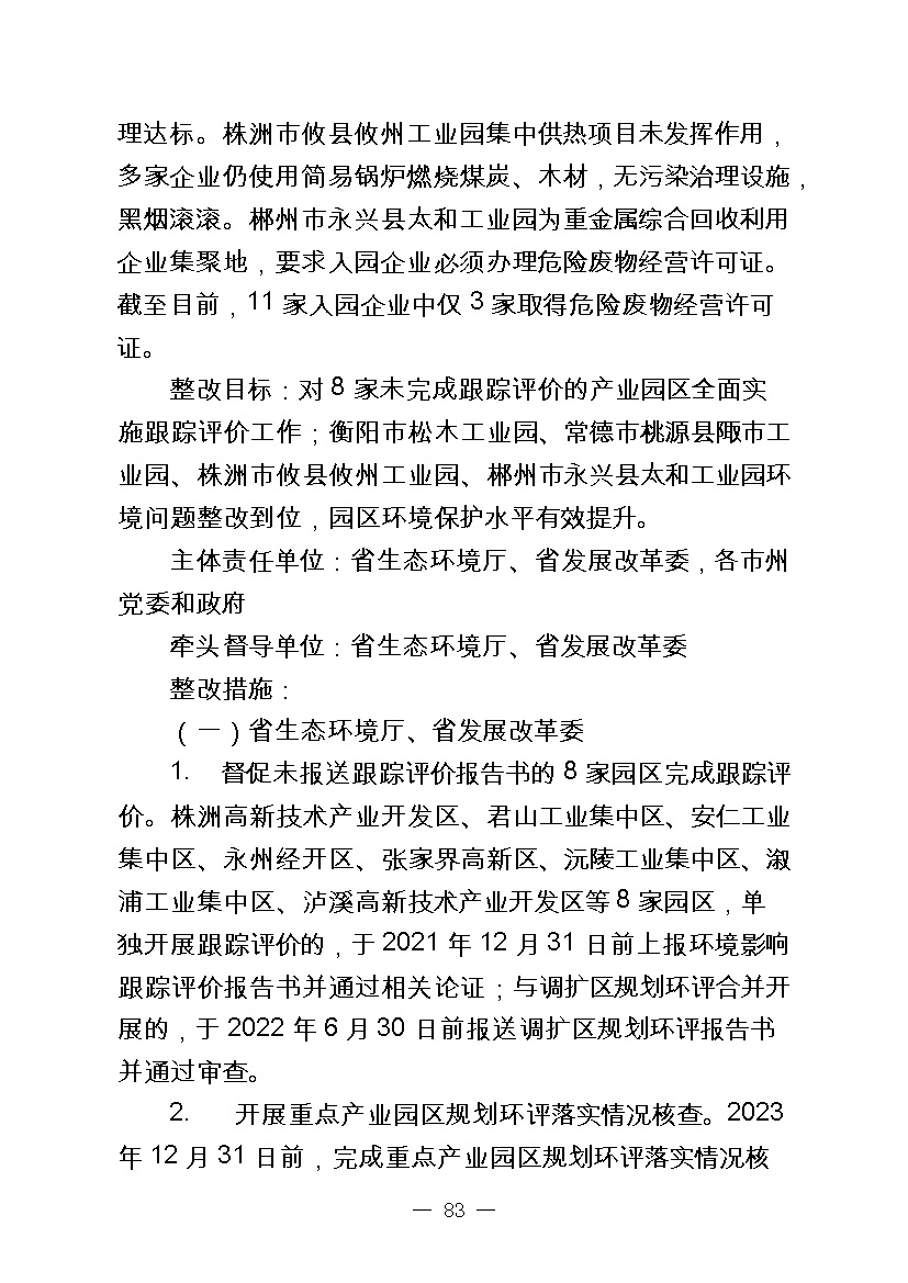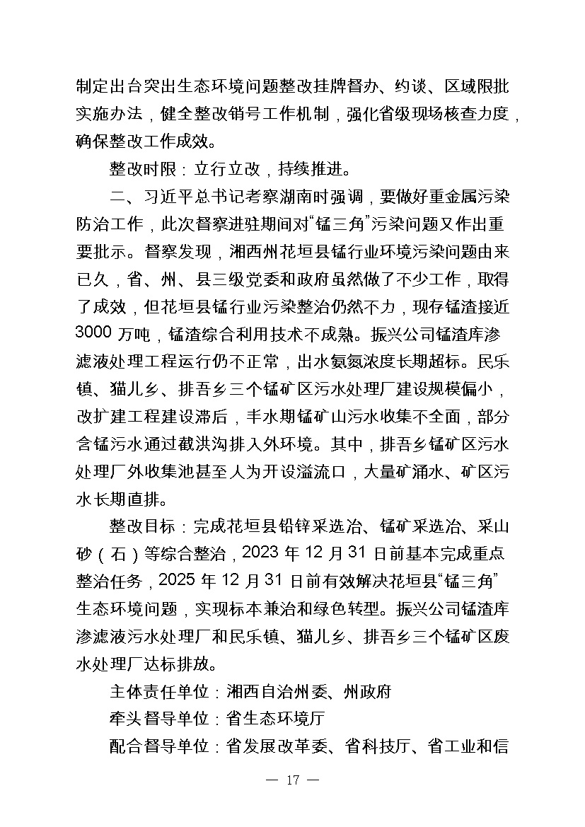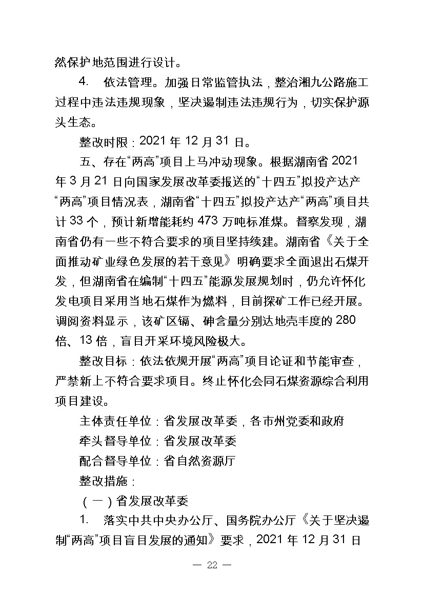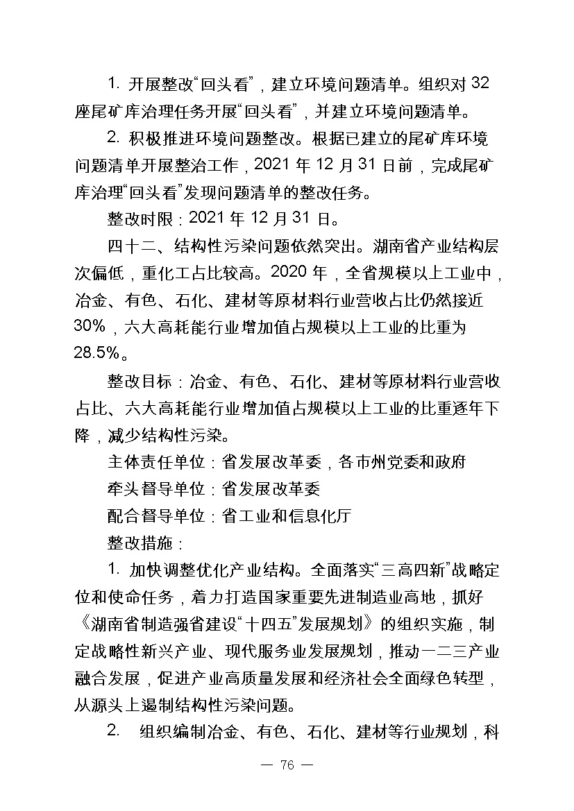 《湖南省貫徹落實(shí)第二輪中央生態(tài)環(huán)境保護(hù)督察報(bào)告整改方案》