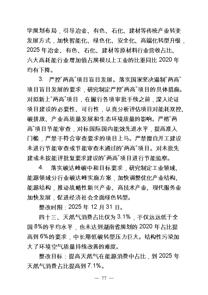 五是構(gòu)建綠色生產(chǎn)生活方式。實(shí)施碳排放達(dá)峰行動(dòng),按照中央部署要求,統(tǒng)籌協(xié)調(diào)、加快構(gòu)建碳達(dá)峰碳中和“1+1+N”政策體系,研究制定碳達(dá)峰碳中和實(shí)施意見(jiàn)、2030年前碳達(dá)峰行動(dòng)方案和若干個(gè)分行業(yè)分領(lǐng)域?qū)嵤┓桨福酱僦笇?dǎo)各市州結(jié)合本地區(qū)實(shí)際研究制定碳達(dá)峰行動(dòng)方案。編制應(yīng)對(duì)氣候變化行動(dòng)方案和“十四五”應(yīng)對(duì)氣候變化專項(xiàng)規(guī)劃,積極開(kāi)展應(yīng)對(duì)氣候變化工作。推動(dòng)產(chǎn)業(yè)結(jié)構(gòu)調(diào)整,搬遷改造沿江化工企業(yè),淘汰過(guò)剩落后產(chǎn)能,控制高耗能行業(yè)新增產(chǎn)能規(guī)模。推動(dòng)高污染企業(yè)搬遷入園或依法關(guān)閉。強(qiáng)化煤炭消費(fèi)總量控制,推進(jìn)能源結(jié)構(gòu)調(diào)整。推進(jìn)綠色生活和綠色消費(fèi)方式,推動(dòng)落實(shí)價(jià)格、財(cái)稅、金融等政策。加大環(huán)保設(shè)施向公眾開(kāi)放力度。完善生態(tài)環(huán)境公益訴訟制度。推進(jìn)生態(tài)文明示范創(chuàng)建。