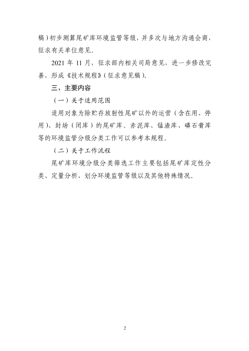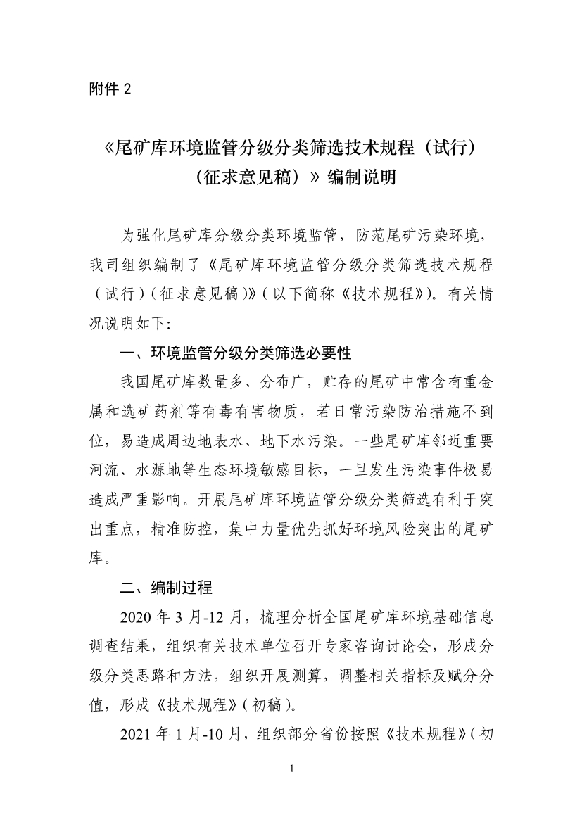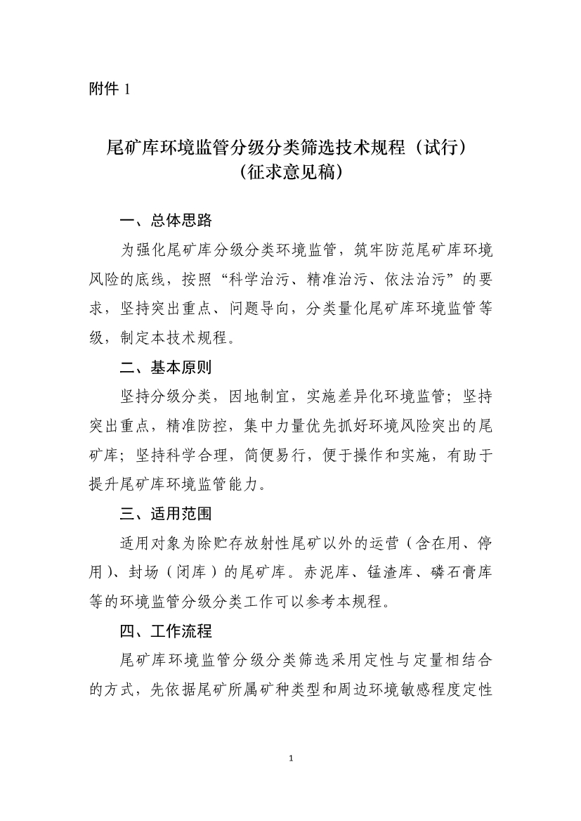 《尾礦庫環(huán)境監(jiān)管分級(jí)分類篩選技術(shù)規(guī)程(試行)(征求意見稿)》