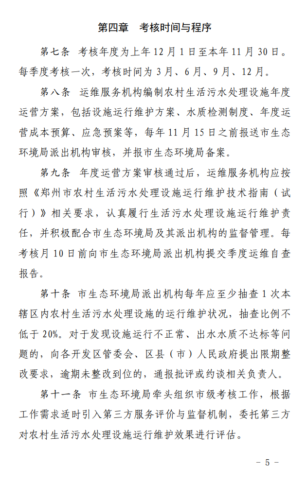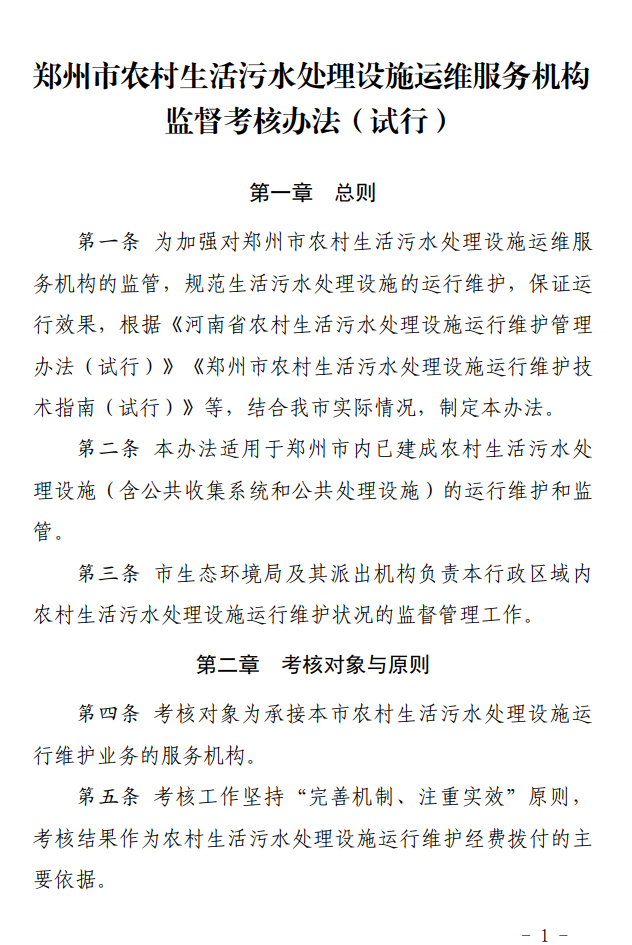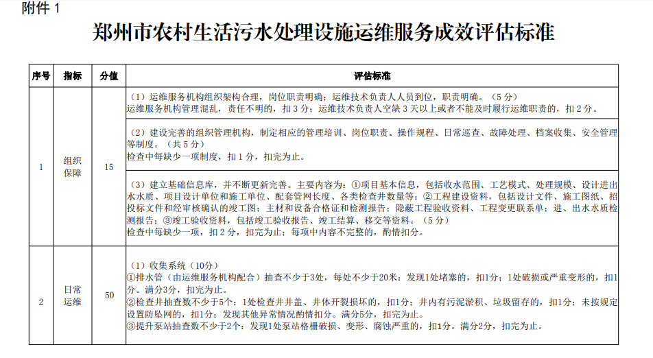 《鄭州市農(nóng)村污水處理設(shè)施維護(hù)運(yùn)維服務(wù)機(jī)構(gòu)監(jiān)督考核辦法(試行)》