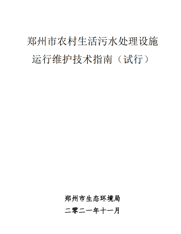 《鄭州市農(nóng)村污水處理設(shè)施運行維護技術(shù)指南(試行)》(鄭環(huán)委辦【2021】6號)