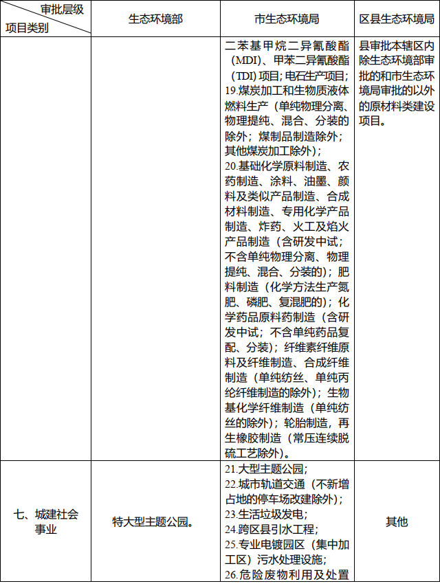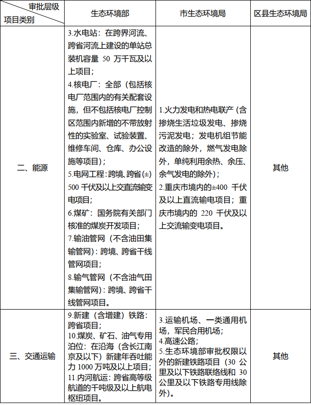 重慶市建設(shè)項目環(huán)境影響評價文件分級審批目錄(2021年修訂)