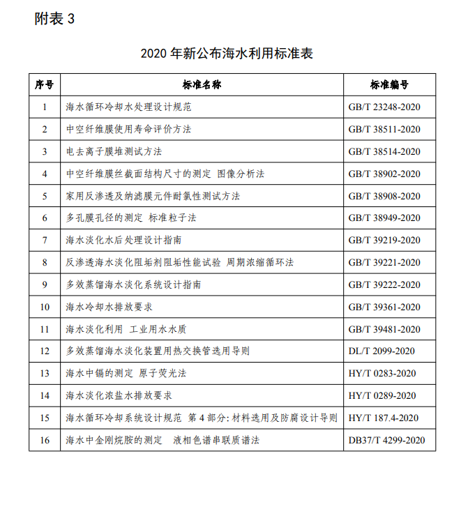 截至 2020 年底,全國現(xiàn)有海水淡化工程 135 個(gè),工程 規(guī)模 1651083 噸/日,新建成海水淡化工程規(guī)模 64850 噸/日; 年海水冷卻用水量 1698.14 億噸,比 2019 年增加了212.01億噸。天津、山東、江蘇等省市研究制定支持海水利用的政策措施,天津海水淡化產(chǎn)業(yè)(人才)聯(lián)盟、膠東經(jīng)濟(jì)圈海水淡化與綜合利用產(chǎn)業(yè)聯(lián)盟和山東省海水淡化利用協(xié)會相繼成立,促進(jìn)海水利用產(chǎn)業(yè)在沿海地區(qū)進(jìn)一步集聚發(fā)展。新發(fā)布海水利用標(biāo)準(zhǔn) 16 項(xiàng),包括國家標(biāo)準(zhǔn) 11 項(xiàng)、行業(yè)標(biāo)準(zhǔn) 4 項(xiàng)、 地方標(biāo)準(zhǔn) 1 項(xiàng)。