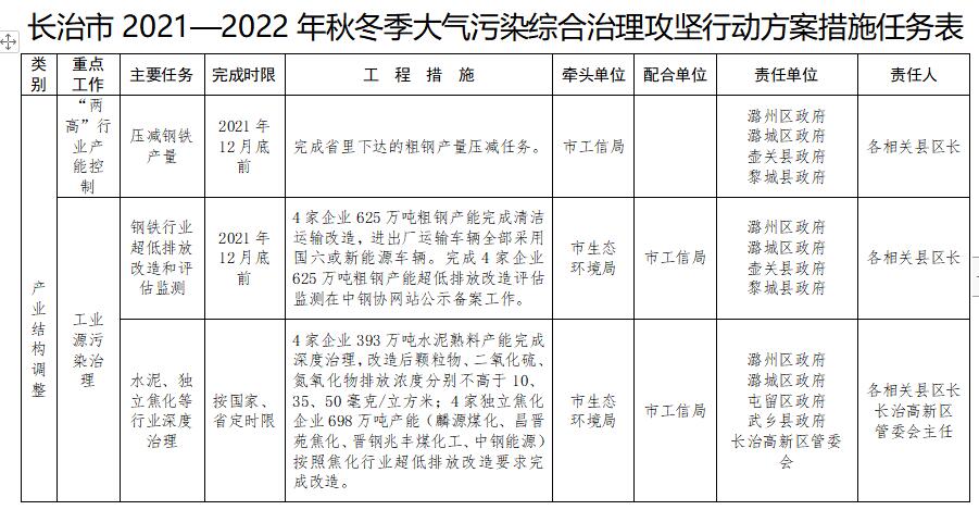 長治市2021—2022年秋冬季大氣污染綜合治理攻堅方案