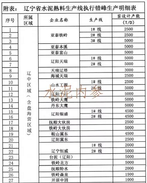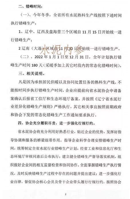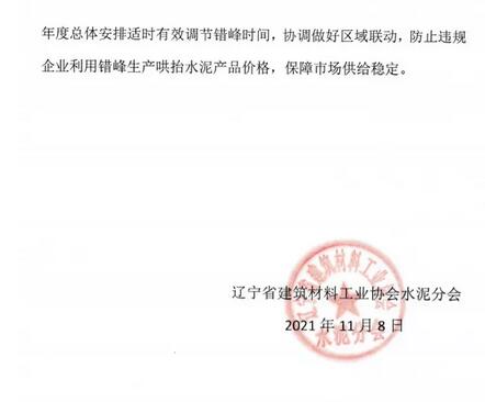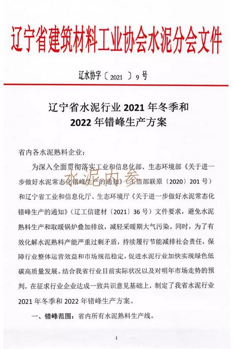 《遼寧省水泥行業(yè)2021年冬季和2022年錯(cuò)峰生產(chǎn)方案》(遼水協(xié)字【2021】9號(hào))