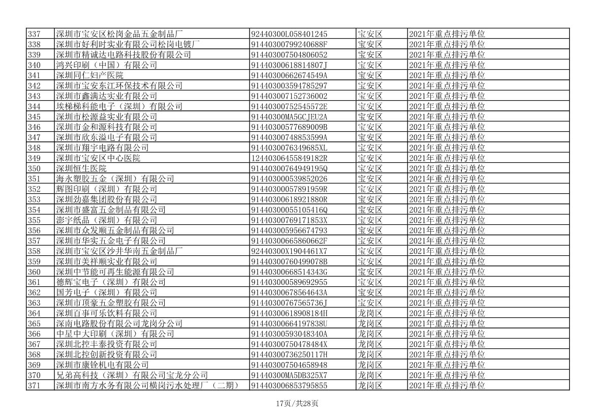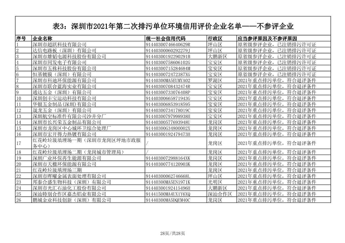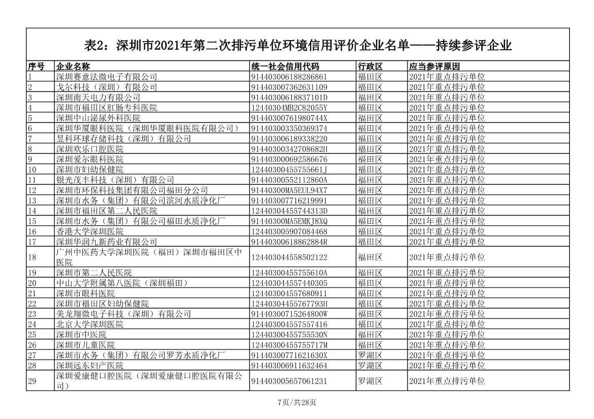 《深圳公布2021年第二次排污單位環(huán)境信用評(píng)價(jià)企業(yè)名單》