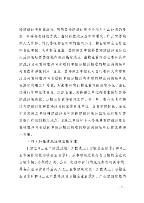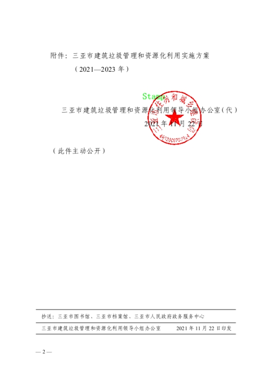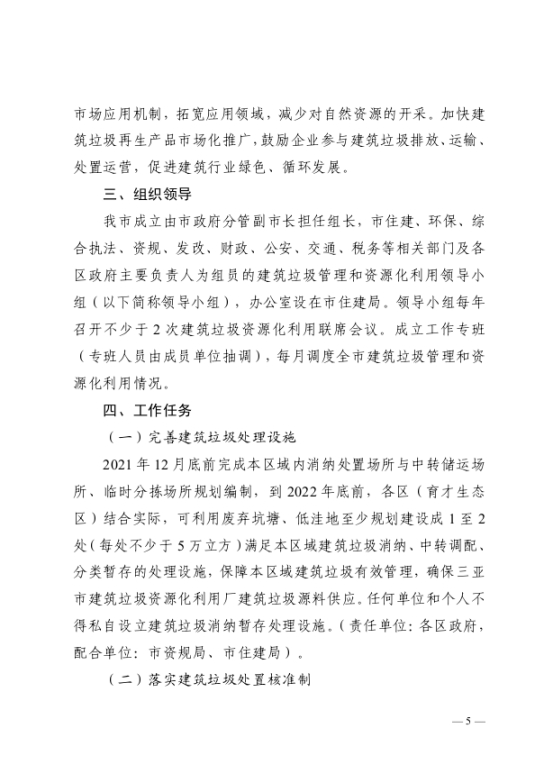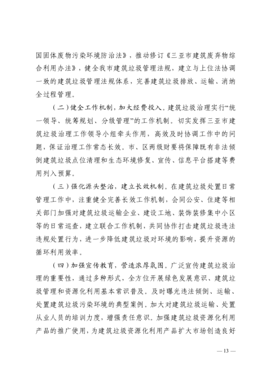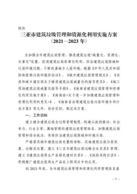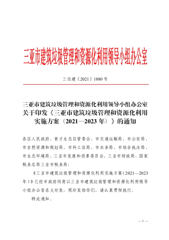 《三亞市建筑垃圾管理和資源化利用實施方案(2021—2023年)》(三住建【2021】1880號)