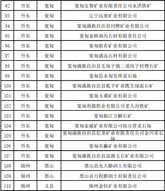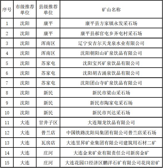 遼寧省自然資源廳《遼寧省公布2021年度綠色礦山創(chuàng)建庫入庫礦山企業(yè)名單》
