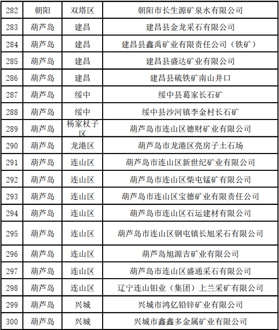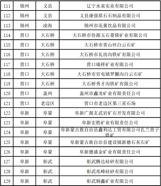 遼寧省自然資源廳發(fā)布《遼寧省2021年度省級綠色礦山創(chuàng)建庫入庫公告》,將302家礦山企業(yè)納入省級綠色礦山創(chuàng)建庫。詳情如下: