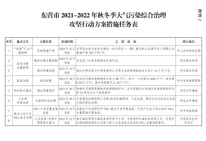 《東營市2021-2022年秋冬季大氣污染綜合治理攻堅(jiān)行動(dòng)實(shí)施方案》