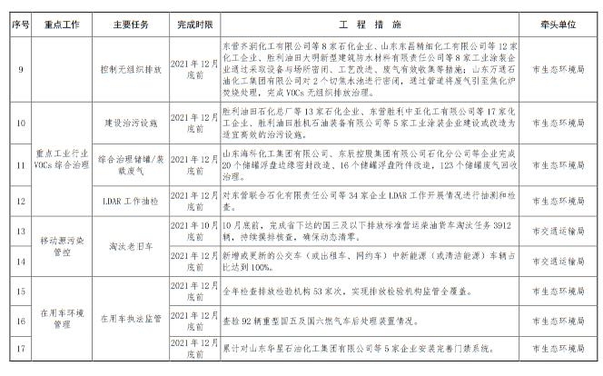 2021年12月底前,對(duì)檢查中發(fā)現(xiàn)的問題,指導(dǎo)企業(yè)統(tǒng)籌環(huán)保和安全生產(chǎn)要求,制定整改方案,明確具體措施、完成時(shí)限和責(zé)任人,并按照治理要求加快整治,提高 VOCs治理工作的針對(duì)性和有效性,做到“夏病冬治”.(牽頭單位:市生態(tài)環(huán)境局)加快推進(jìn)重點(diǎn)行業(yè)VOCs治理項(xiàng)目建設(shè),2021年12月底前,東營齊潤化工有限公司等8家石化企業(yè)、山東東昌精細(xì)化工有限公司等12家化工企業(yè)、勝利油田大明新型建筑防水材料有限責(zé)任公司等8家工業(yè)涂裝企業(yè)、山東萬通石油化工集團(tuán)有限公司完成VOCs無組織排放治理;勝利油田石化總廠等13家石化企業(yè)、東營勝利中亞化工有限公司等17家化工企業(yè)、勝利油田勝機(jī)石油裝備有限公司等5家工業(yè)涂裝企業(yè)完成治污設(shè)施升級(jí)改造;山東??苹ぜ瘓F(tuán)有限公司、東辰控股集團(tuán)有限公司石化分公司等企業(yè)完成20個(gè)儲(chǔ)罐浮盤邊緣密封改造、16個(gè)儲(chǔ)罐浮盤附件改造,123個(gè)儲(chǔ)罐廢氣回收治理.對(duì)東營聯(lián)合石化有限責(zé)任公司等34家企業(yè)LDAR工作開展情況進(jìn)行抽測(cè)和檢查.(牽頭單位:市生態(tài)環(huán)境局)