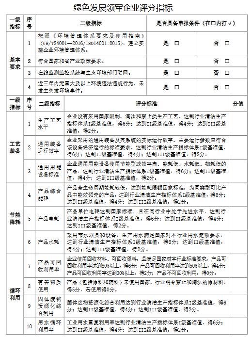 (五)省級評定。省生態(tài)環(huán)境廳會同省工商聯(lián)組織第三方評估機構(gòu)對申報企業(yè)開展綜合評價,在官方網(wǎng)站公示評選結(jié)果,公示無異議的,列入“綠色發(fā)展領(lǐng)軍企業(yè)”名單。