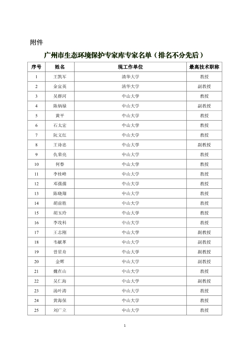 《廣州市生態(tài)環(huán)境保護(hù)專家?guī)鞂<颐麊伟l(fā)布》
