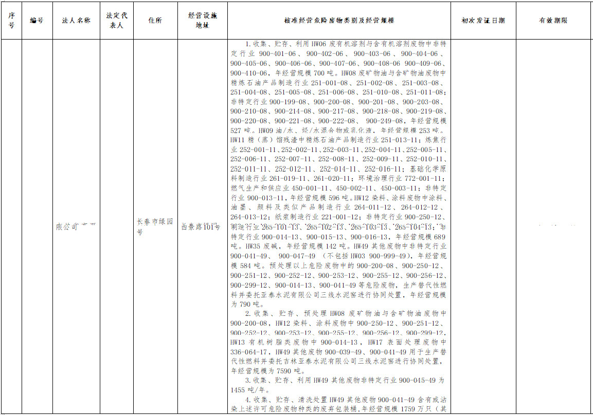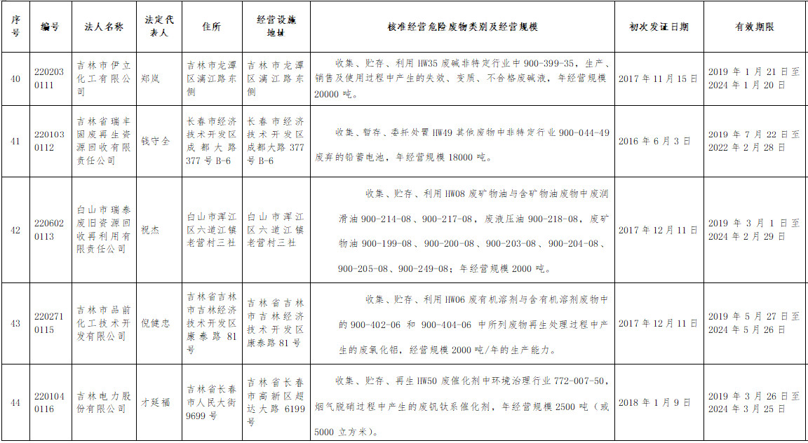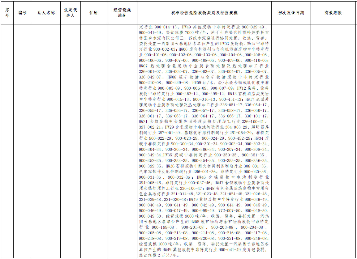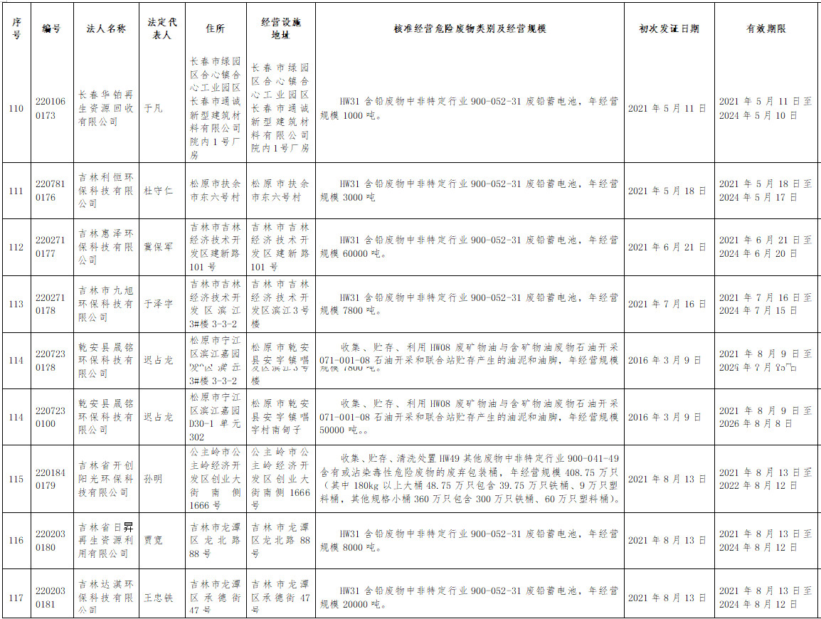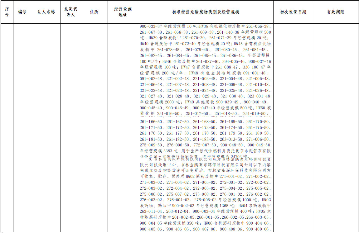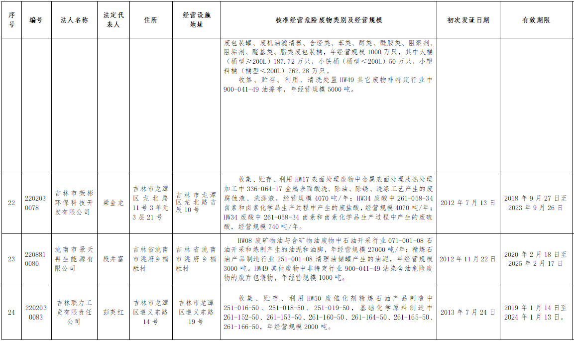 吉林省危險廢物經(jīng)營許可證持證企業(yè)名單(2021年10月更新)