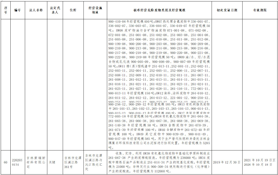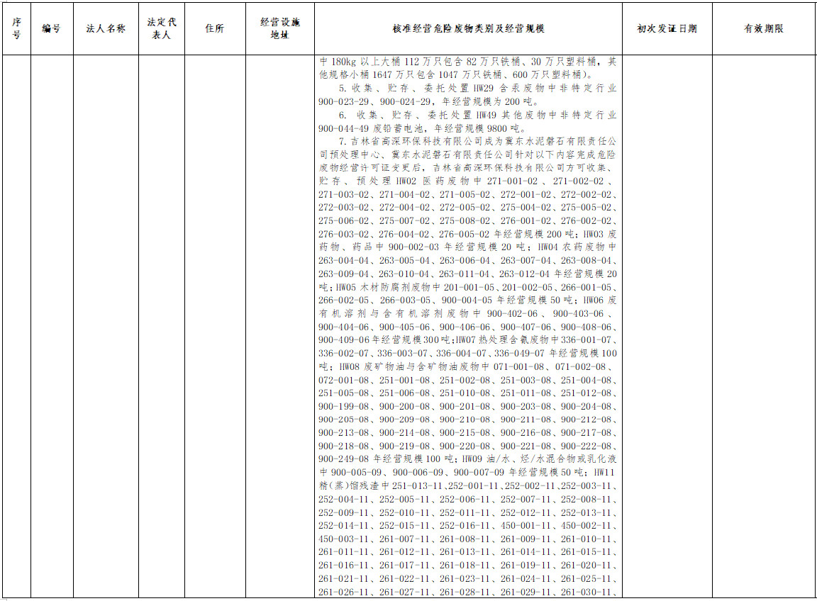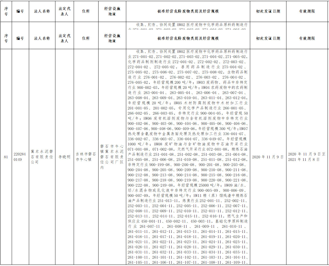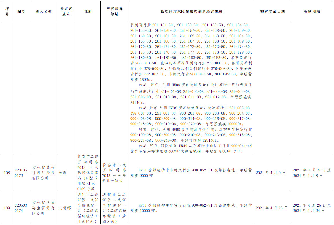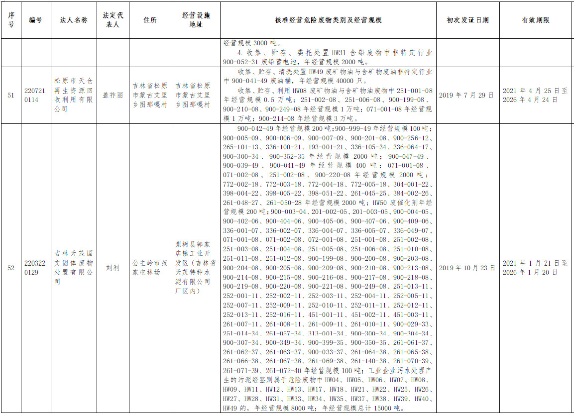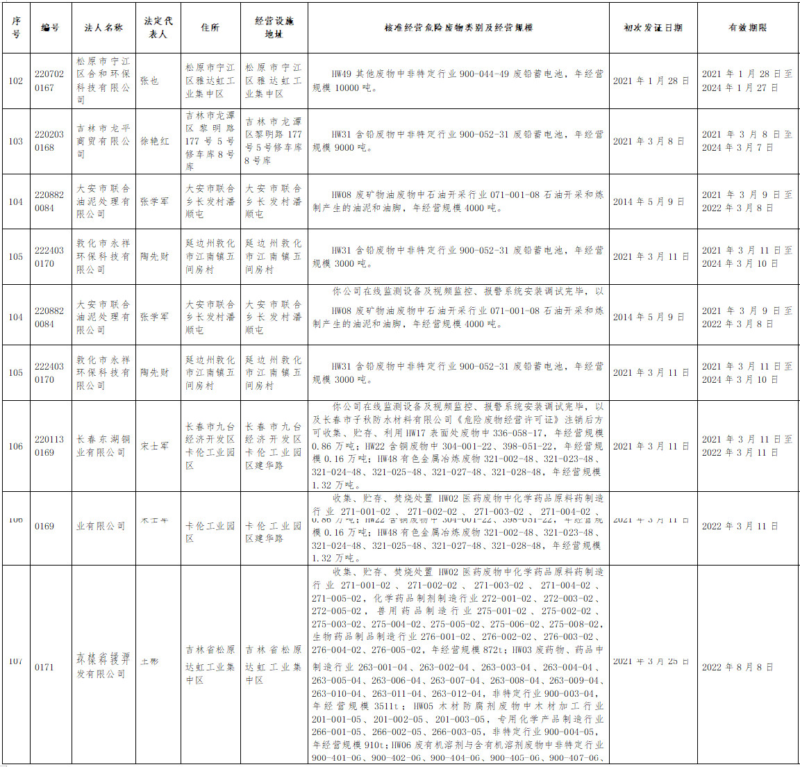 吉林省危險廢物經(jīng)營許可證持證企業(yè)名單(2021年10月更新)