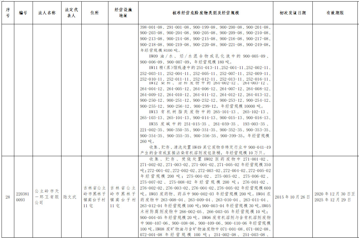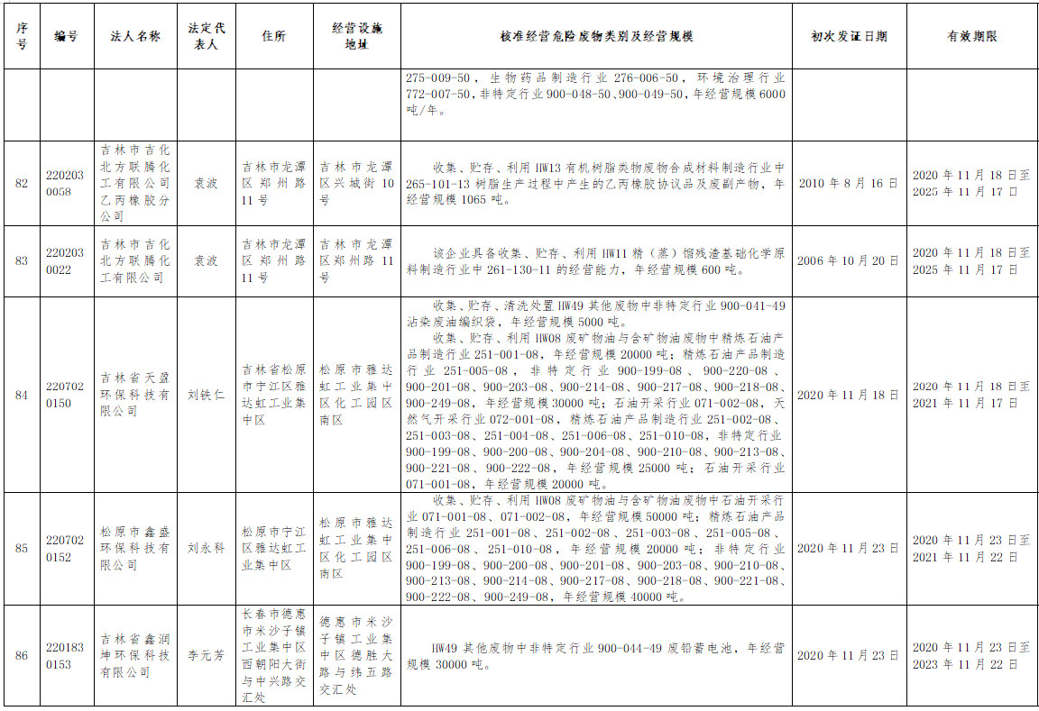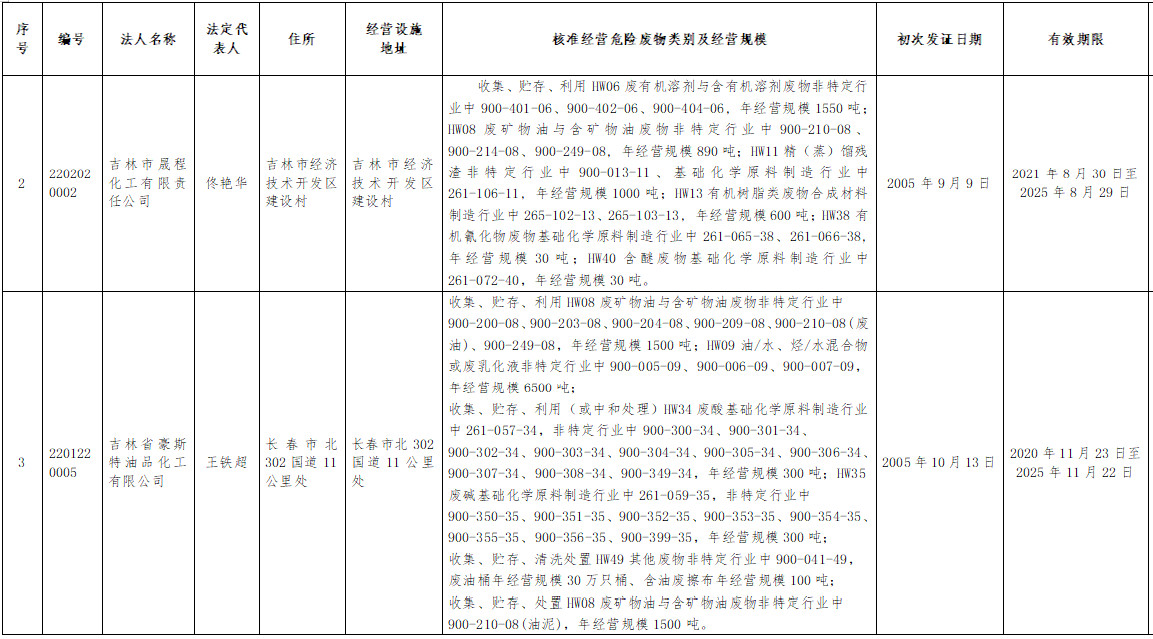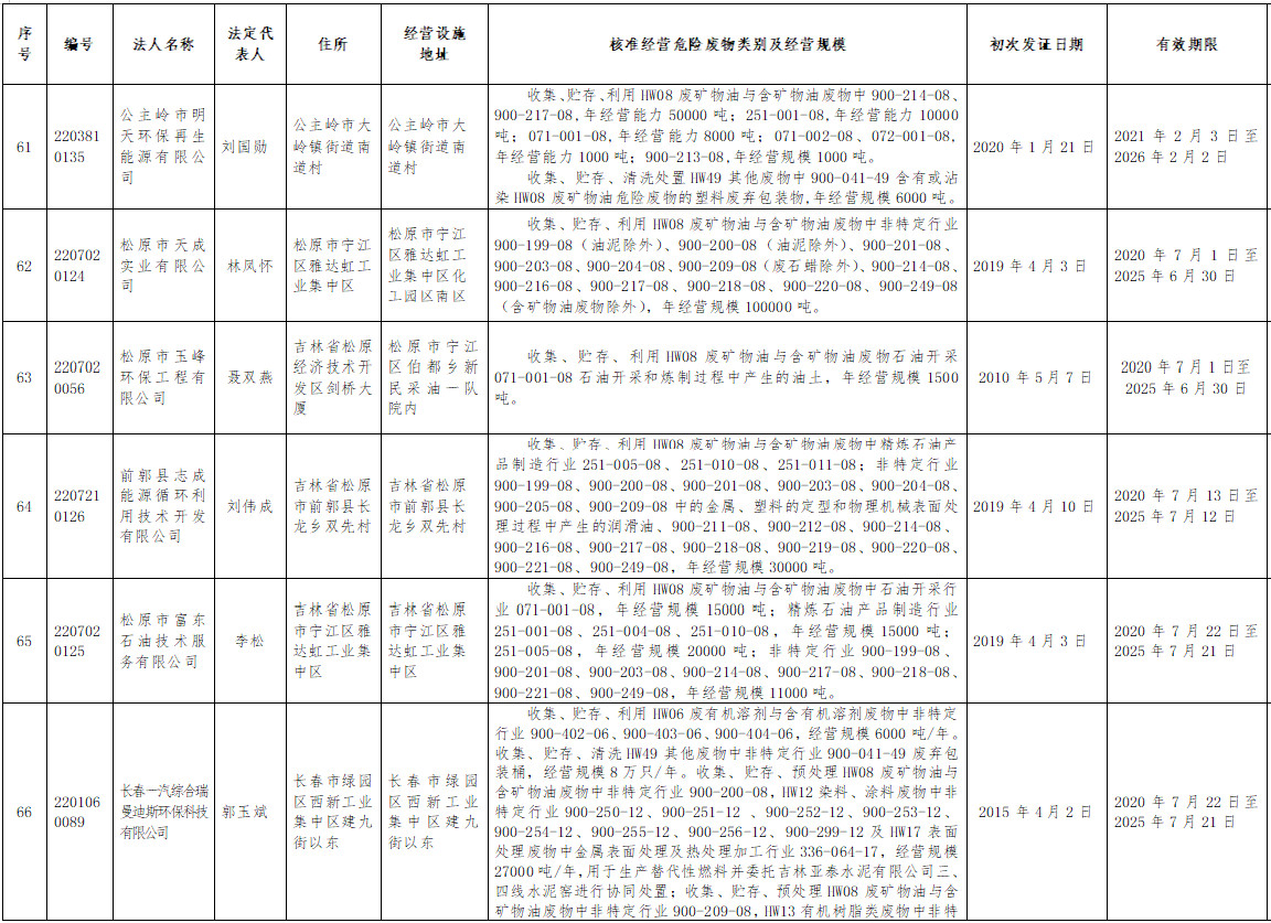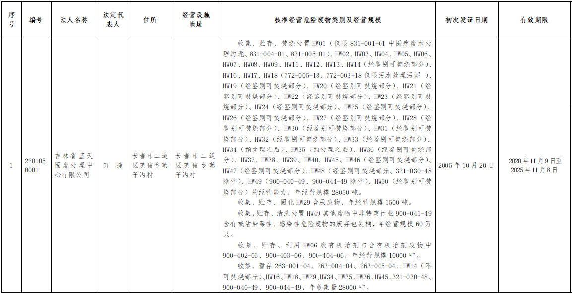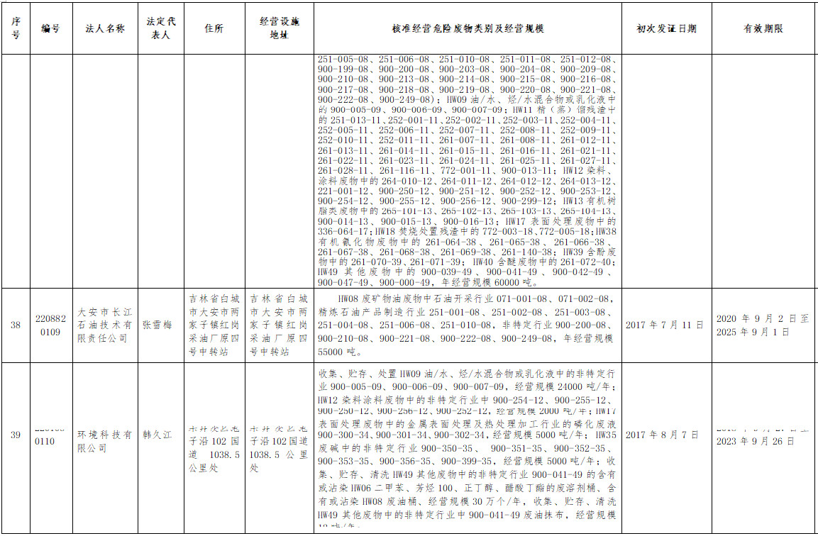 吉林省危險廢物經(jīng)營許可證持證企業(yè)名單(2021年10月更新)