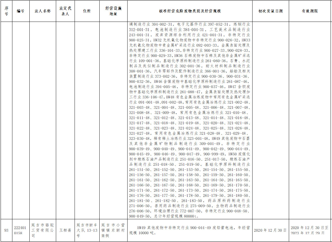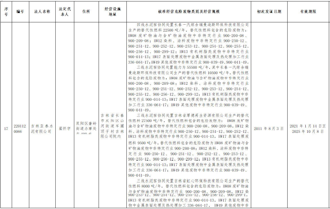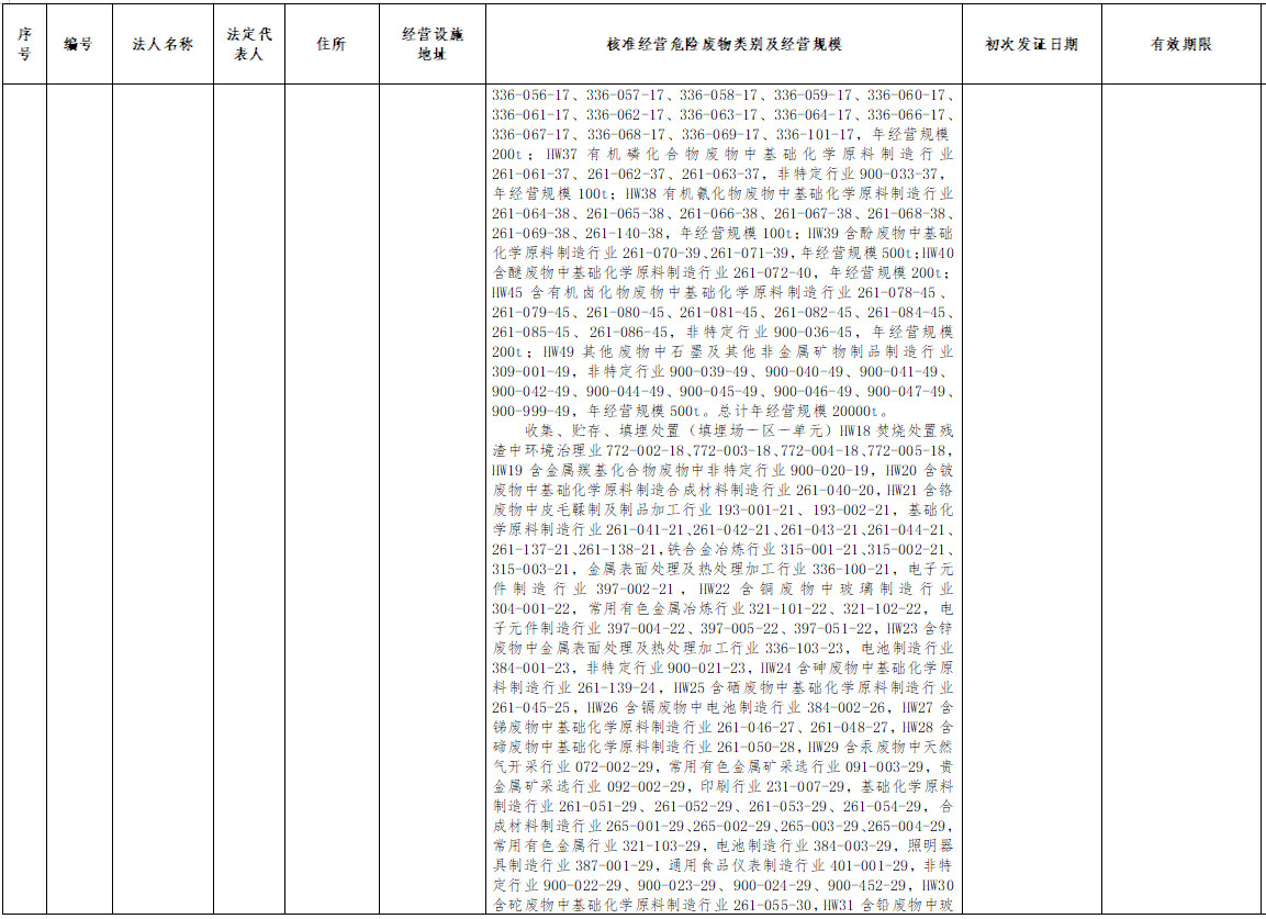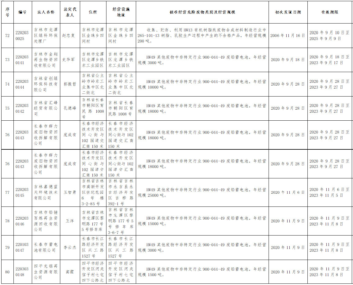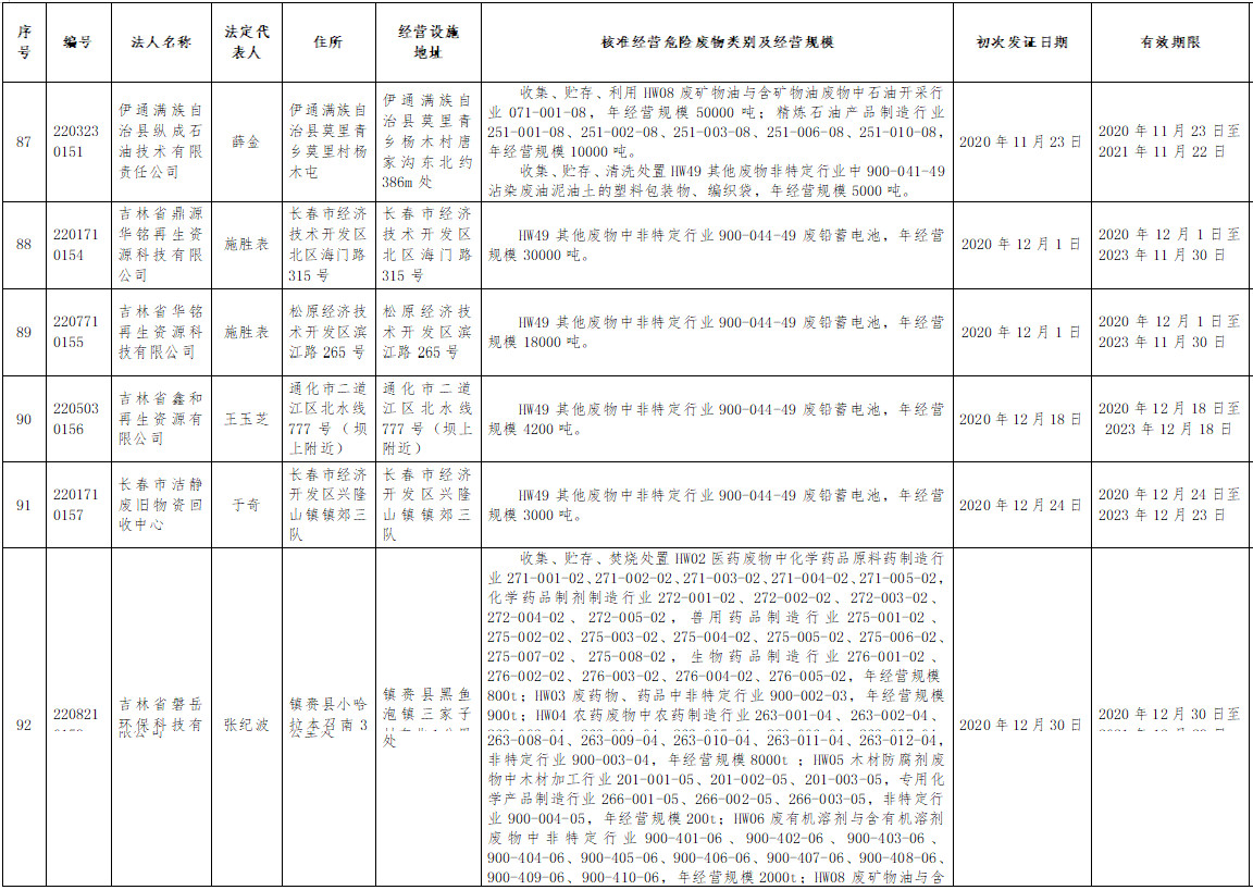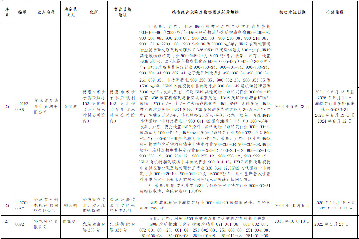 吉林省危險廢物經(jīng)營許可證持證企業(yè)名單(2021年10月更新)