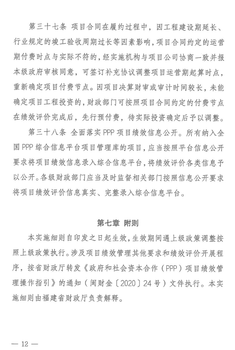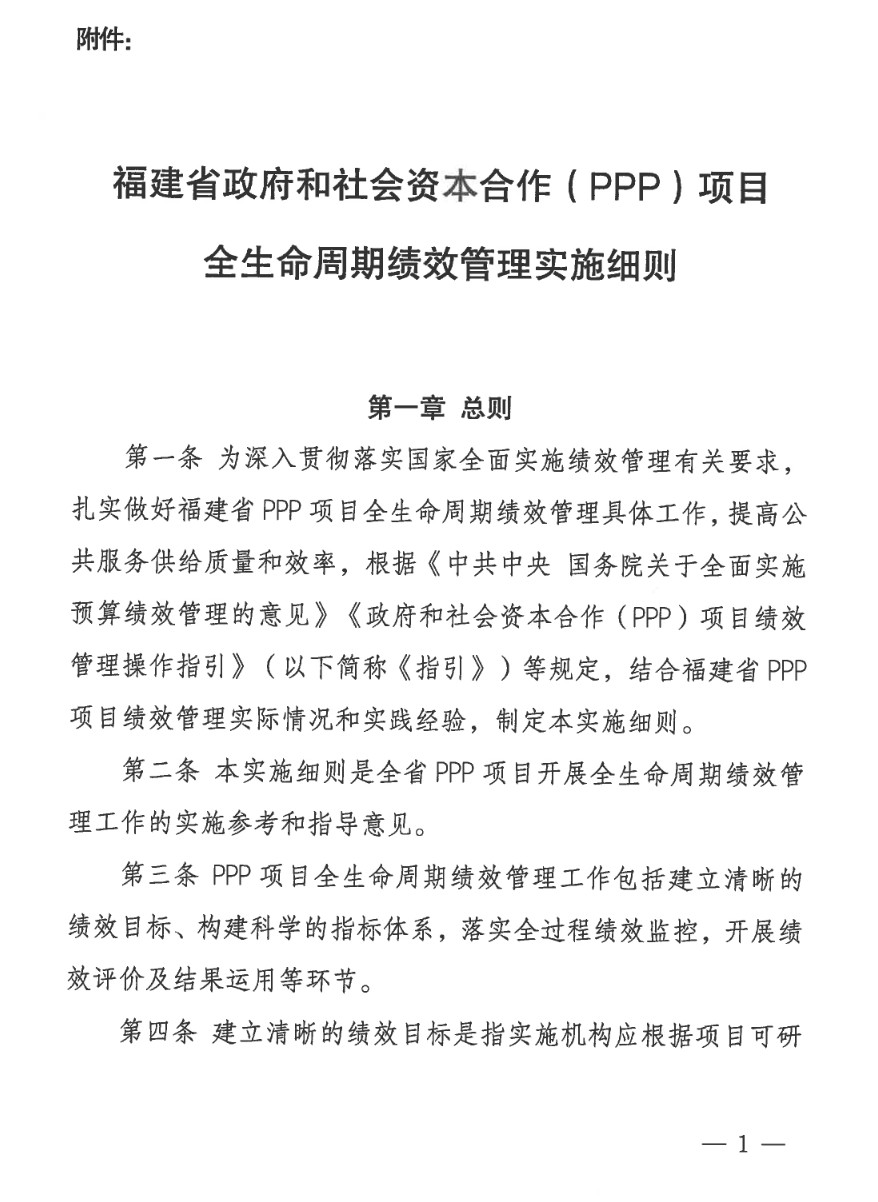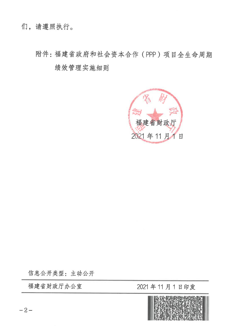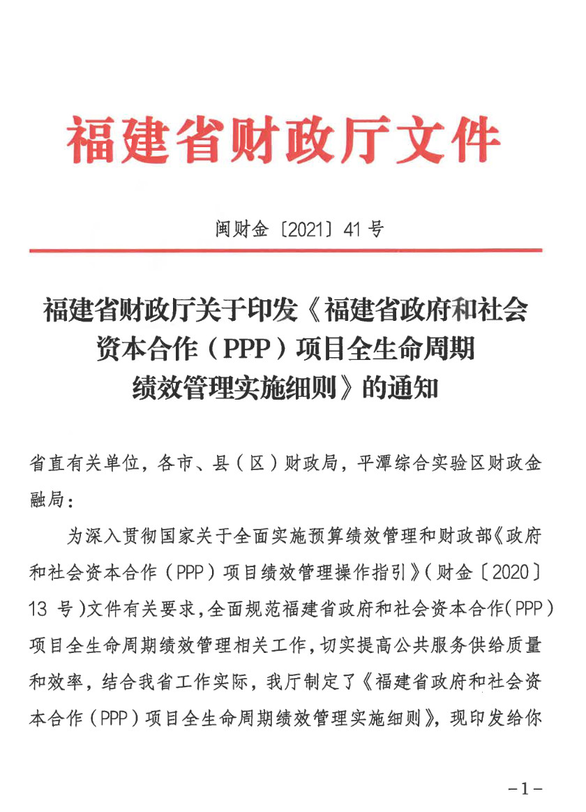 《福建省政府和社會(huì)資本合作(PPP)項(xiàng)目全生命周期績(jī)效管理實(shí)施細(xì)則》(閩財(cái)金【2021】41號(hào))