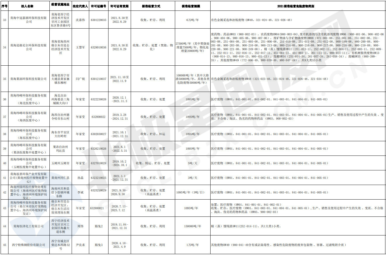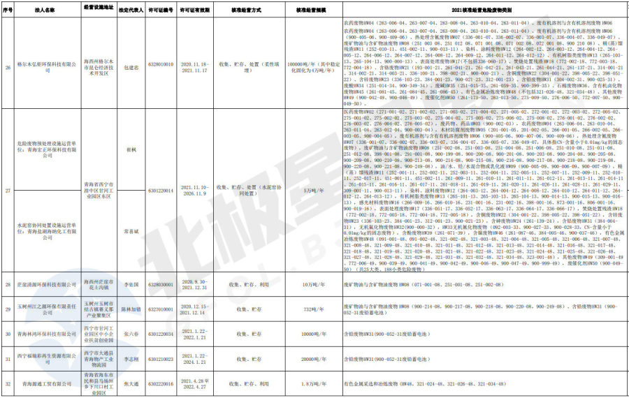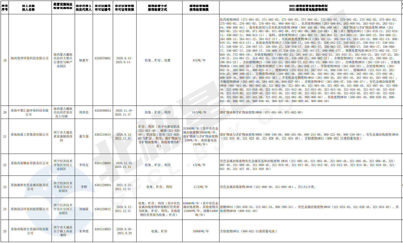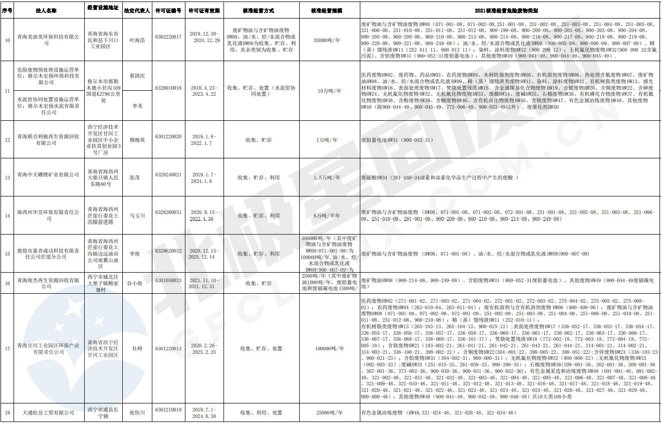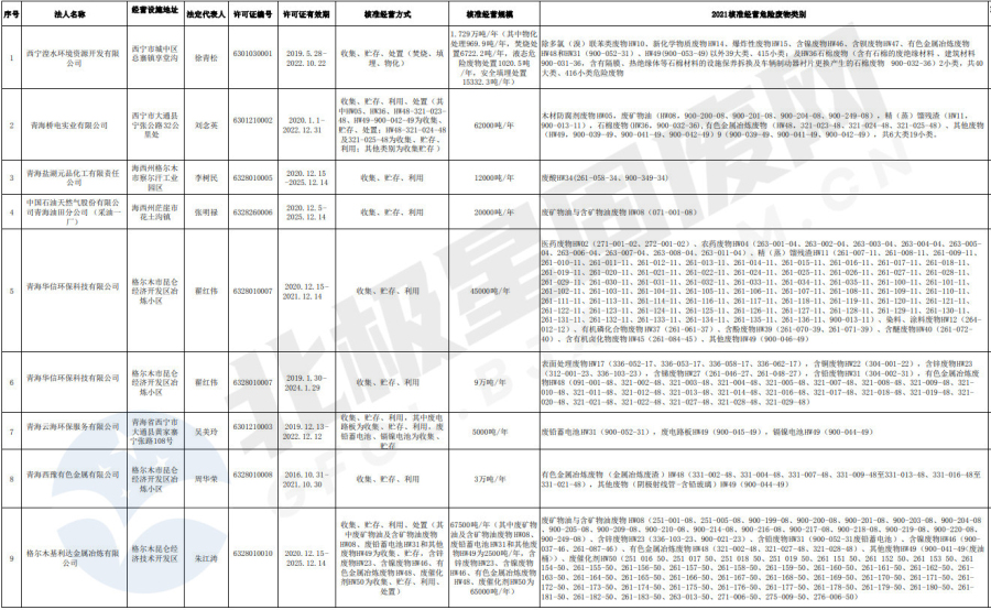 青海省危險廢物經(jīng)營單位清單 (包括豁免經(jīng)營許可證的危險廢物經(jīng)營單位 )(2021年11月10日更新)