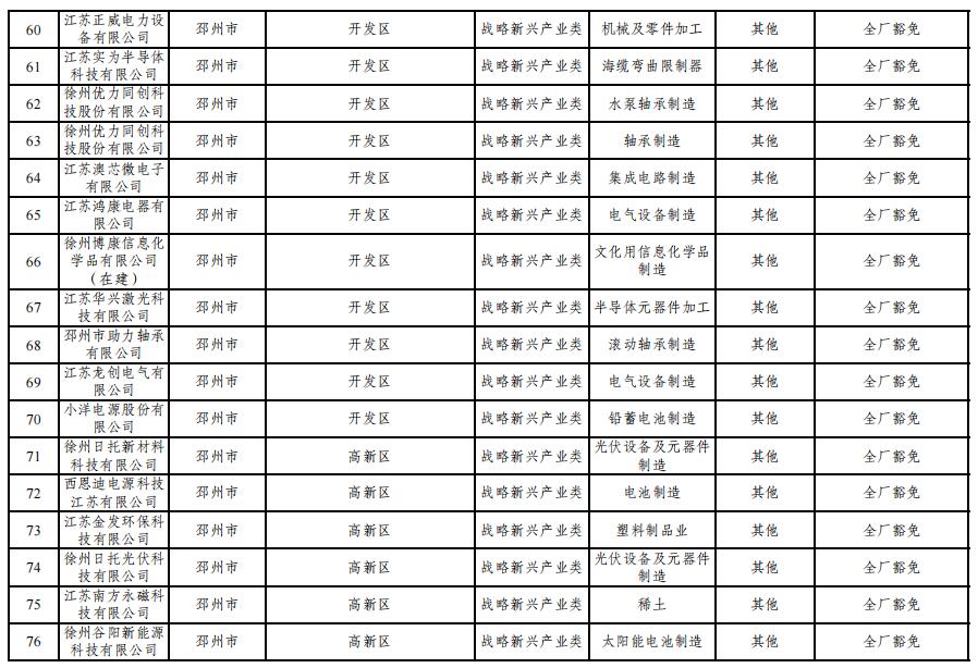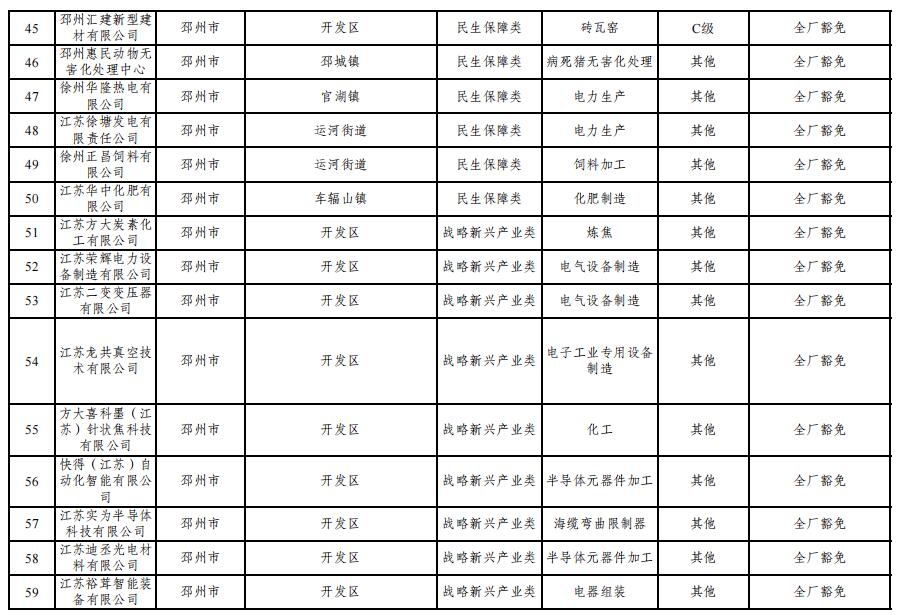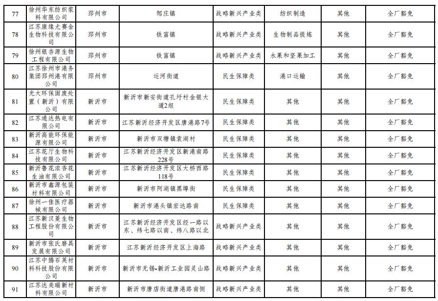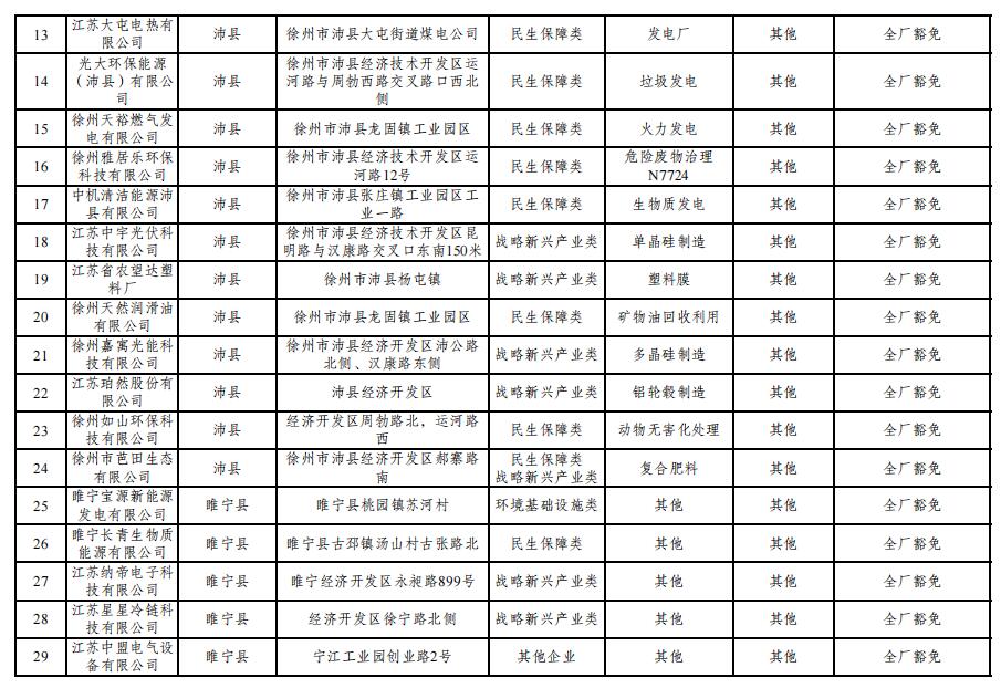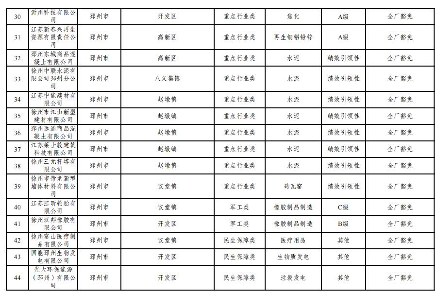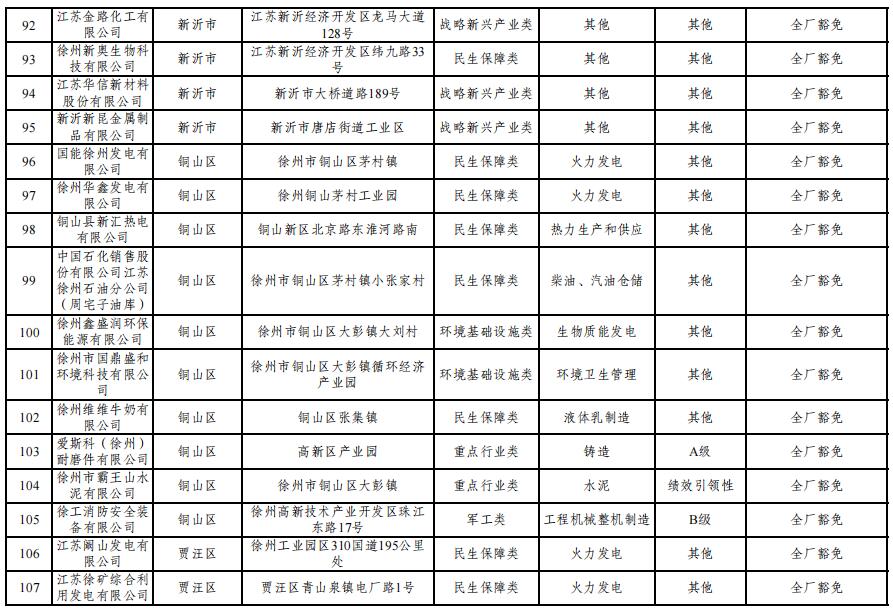 徐州市2021-2022年度重污染天氣應(yīng)急管控豁免企業(yè)、工地名單(第一批)