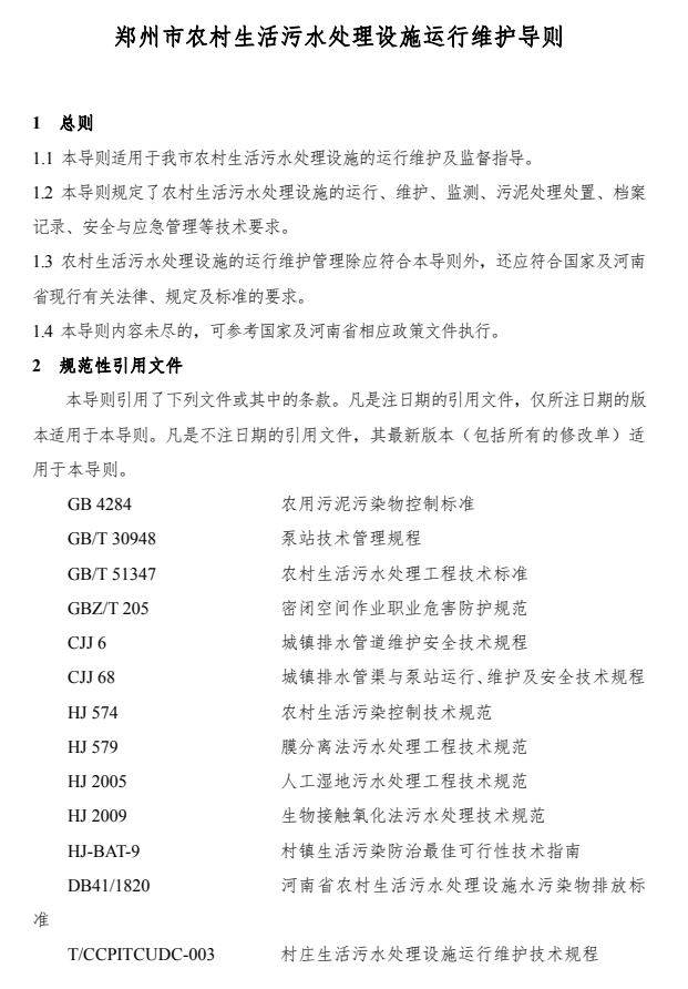 《鄭州市農(nóng)村生活污水處理設(shè)施運(yùn)行維護(hù)導(dǎo)則》(征求意見稿)