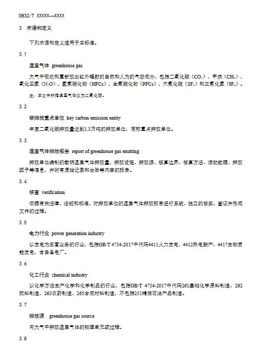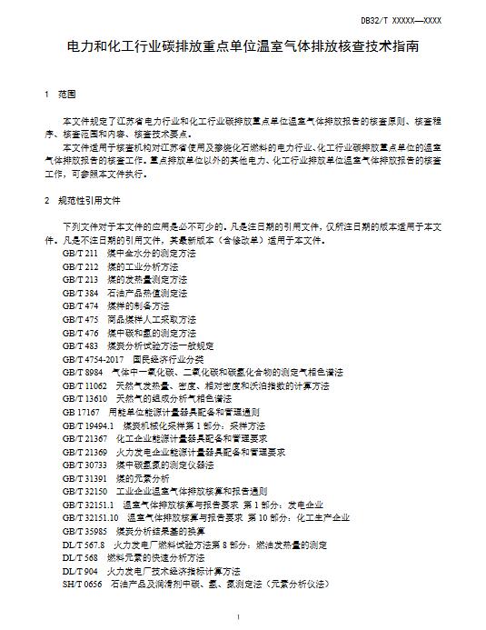 《江蘇省電力和化工行業(yè)碳排放重點單位溫室氣體排放核查技術(shù)指南》(征求意見稿)